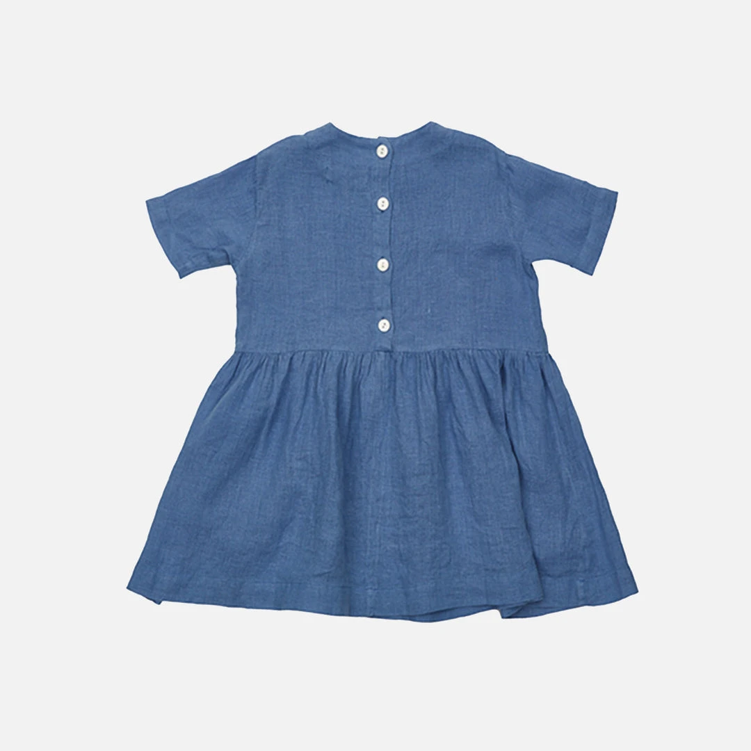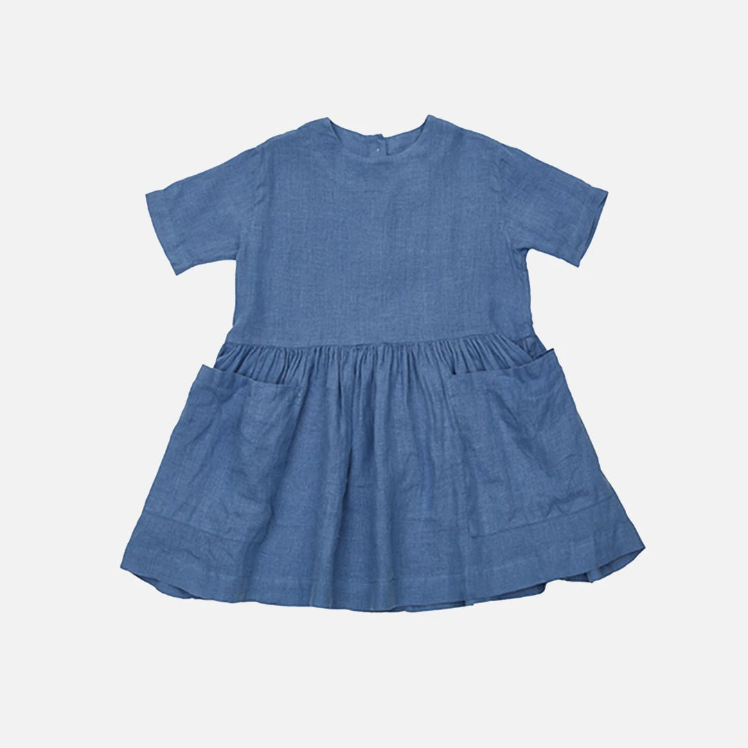 As We Grow’s iconic pocket dress, lightweight and perfect for summer. Features a gathered waist and two pockets, which are great for collecting treasures when exploring outdoors. Great on its own or layered when needed with a cardigan.