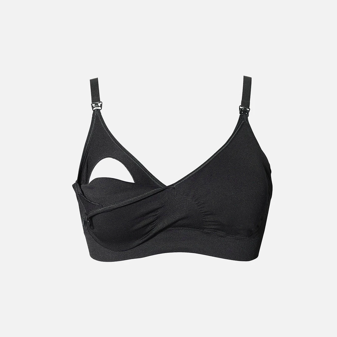 A soft, smooth and incredibly comfortable T-shirt nursing bra. Made seamless with a double layer of fabric in the cups and removable pads for a smooth contour. Smart clips make it easy to open the cups with one hand. An extra hook-and-eye extension makes it easy to adjust the width during pregnancy and nursing.