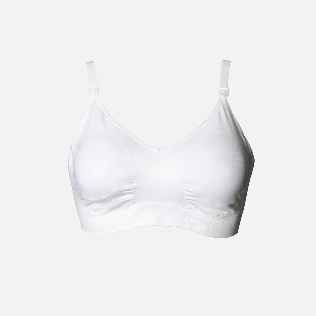 A soft, smooth and incredibly comfortable T-shirt nursing bra. Made seamless with a double layer of fabric in the cups and removable pads for a smooth contour. Smart clips make it easy to open the cups with one hand. An extra hook-and-eye extension makes it easy to adjust the width during pregnancy and nursing.
