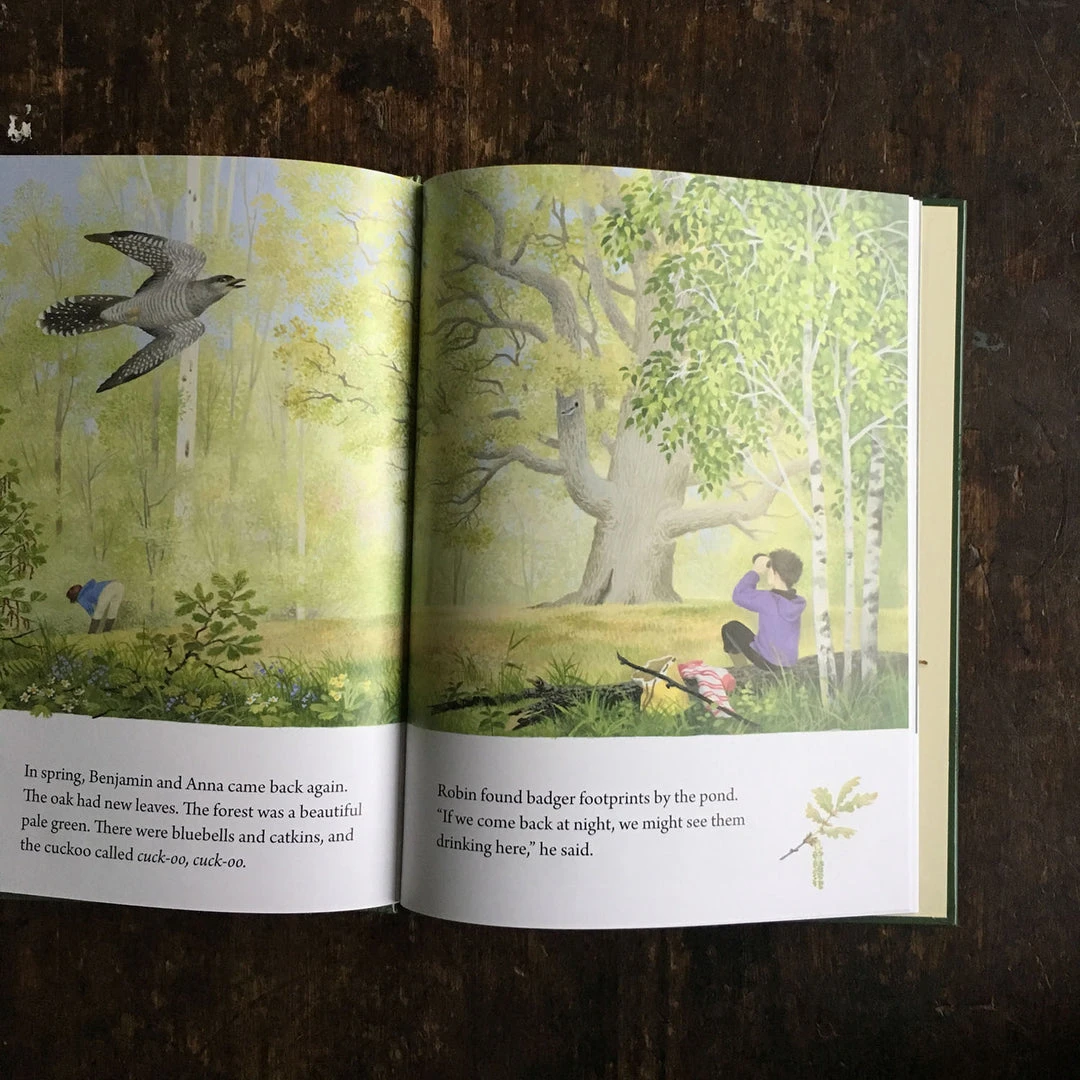 Benjamin and Anna adore staying with their cousin Robin in his house near the forest. His favourite tree, a 300 year old giant oak, is the playhouse for their den, where they watch the squirrels hide acorns in its wide trunk.Â
