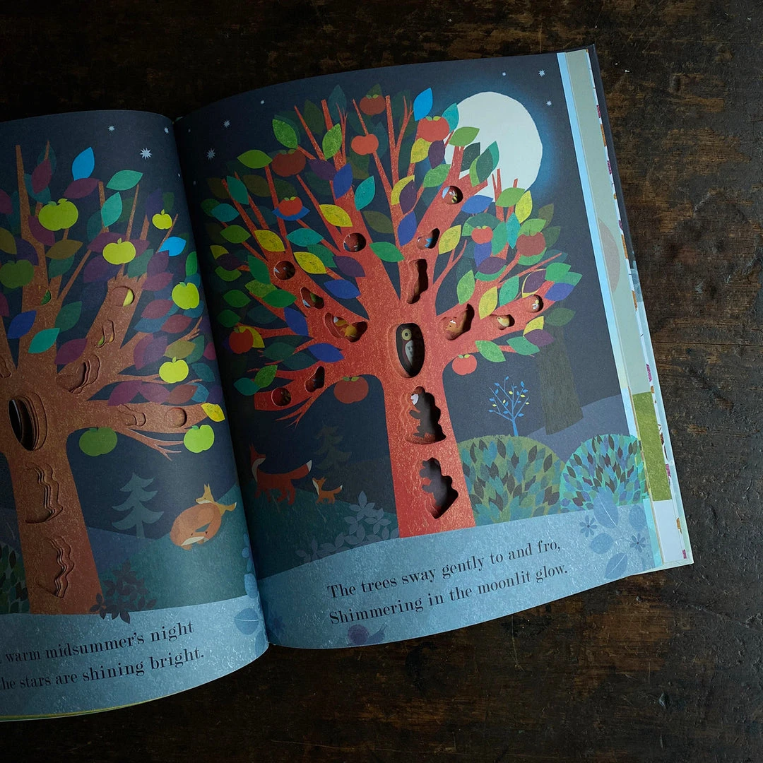 This is a beautiful board book which illustrates a busy world of nature at work through rain, shine, wind and snow. Each season is illustrated by artwork as you follow the seasons come and the seasons go, meanwhile the owl sits watching in his tree…Â