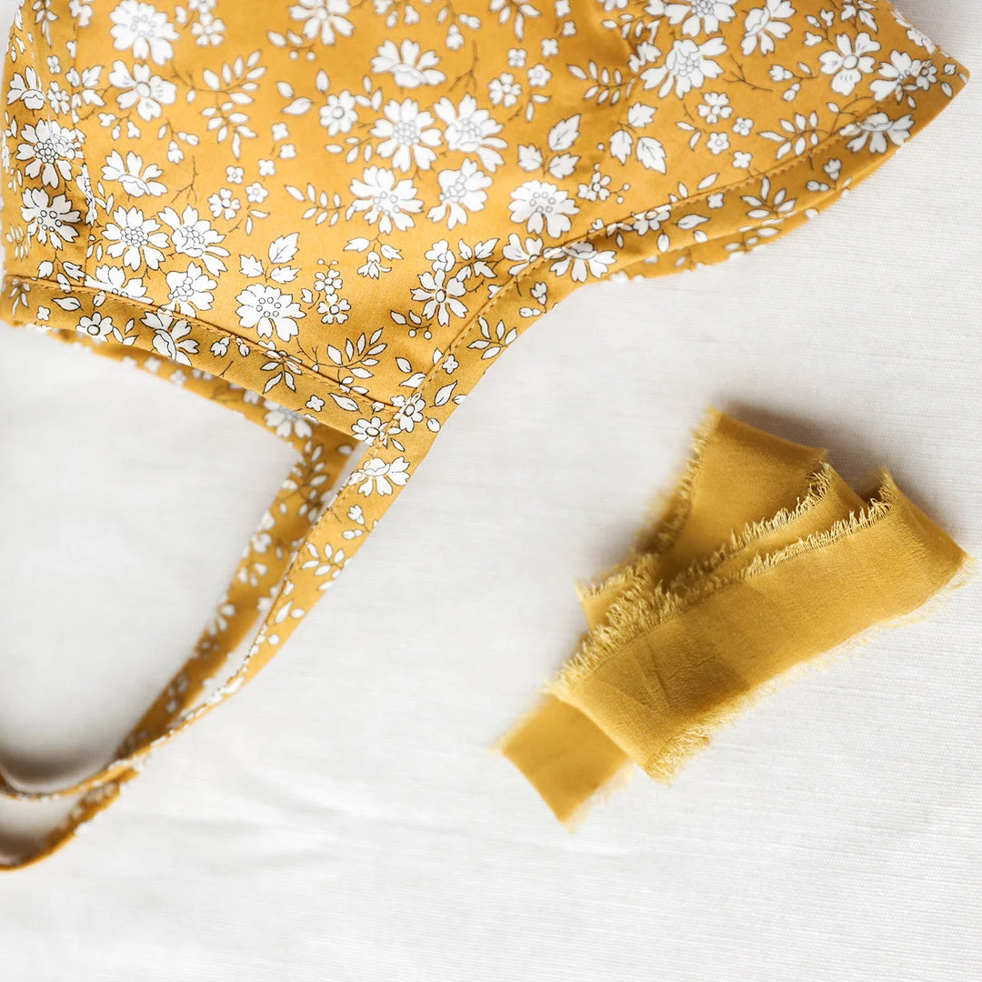 Handmade from Liberty of London cotton, trimmed in cotton, and lined with organic cotton. Briar only use the best for this sweet bonnet.