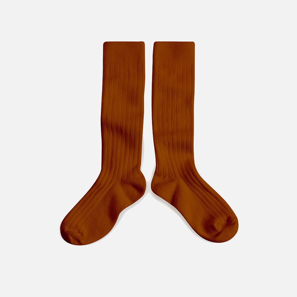 Comfortable, classic long socks in cinnamon. These socks are knitted using a blend of 84% egyptian cotton, 14% polyamide and 2% lycra/elastane for excellent elasticity.Â
