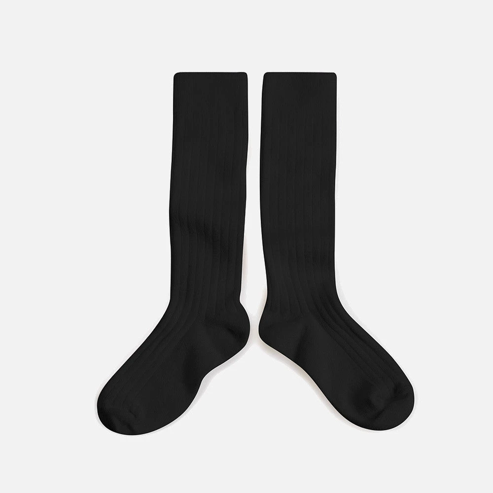 Comfortable, classic long socks unisex in black. These socks are knitted using a blend of 84% egyptian cotton, 14% polyamide and 2% lycra/elastane for excellent elasticity. Colour called carbon/coal.Â