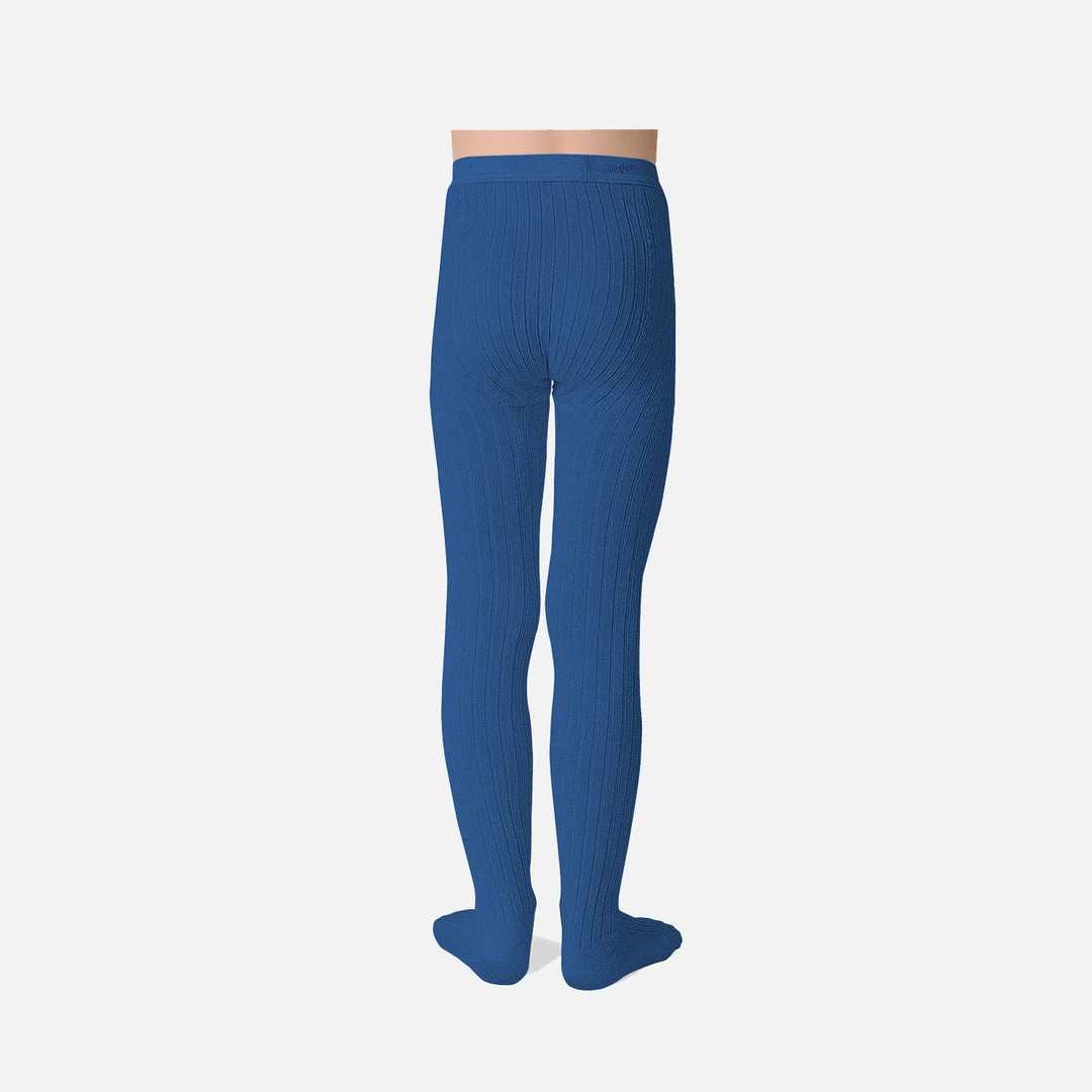 Soft, comfortable and trendy kids tights. These tights are knitted using a blend of 84% egyptian cotton, 14% polyamide and 2% lycra/elastane for excellent elasticity. This colour is Bleu Saphir, we call Blue Sapphire.