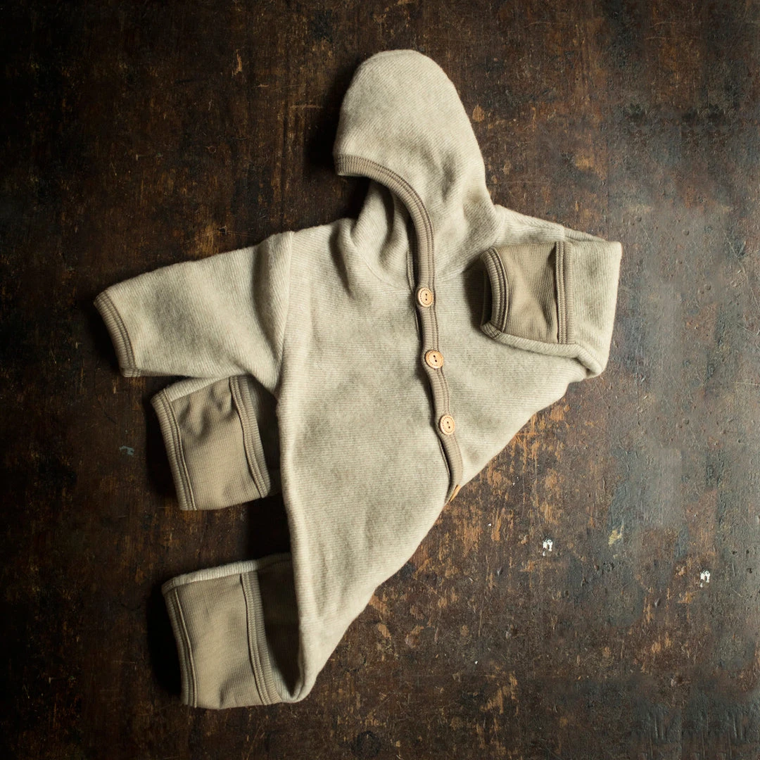 Soft, warm and just amazing, these snuggle / pram suits are the perfect outerwear for winter days. Their temperature-regulating properties also makes them perfect for using in a sling! They are fairly water and dirt resistant. The Cosilana fleece items are thinner than the Engel fleece sweaters and suits we also sell.