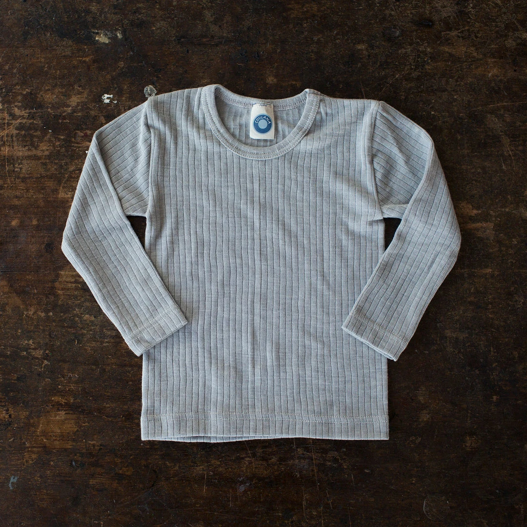 Super soft and gentle kids top in 20% silk, 35% merino wool and 45% organic cotton. Great as pyjama top and a perfect layer in the warmer months and for children with sensitive skin.Â