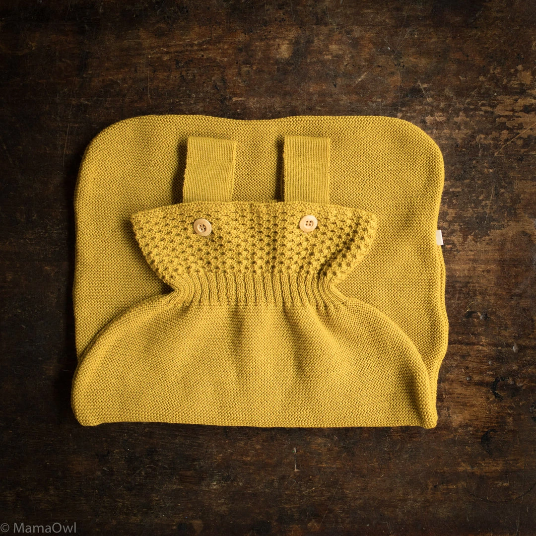 Beautiful and classic Disana knitted sleeping bag is unlike other sleeping bags. It is made with the finest merino wool. The high, stretchy knitted waistband gently embraces the child without pinching, while the wide leg bag leaves space for baby to wriggle about. Two wide knitted straps keep everything in place. The sleeping bag design keeps baby well wrapped up and warm even when she has trouble sleeping.