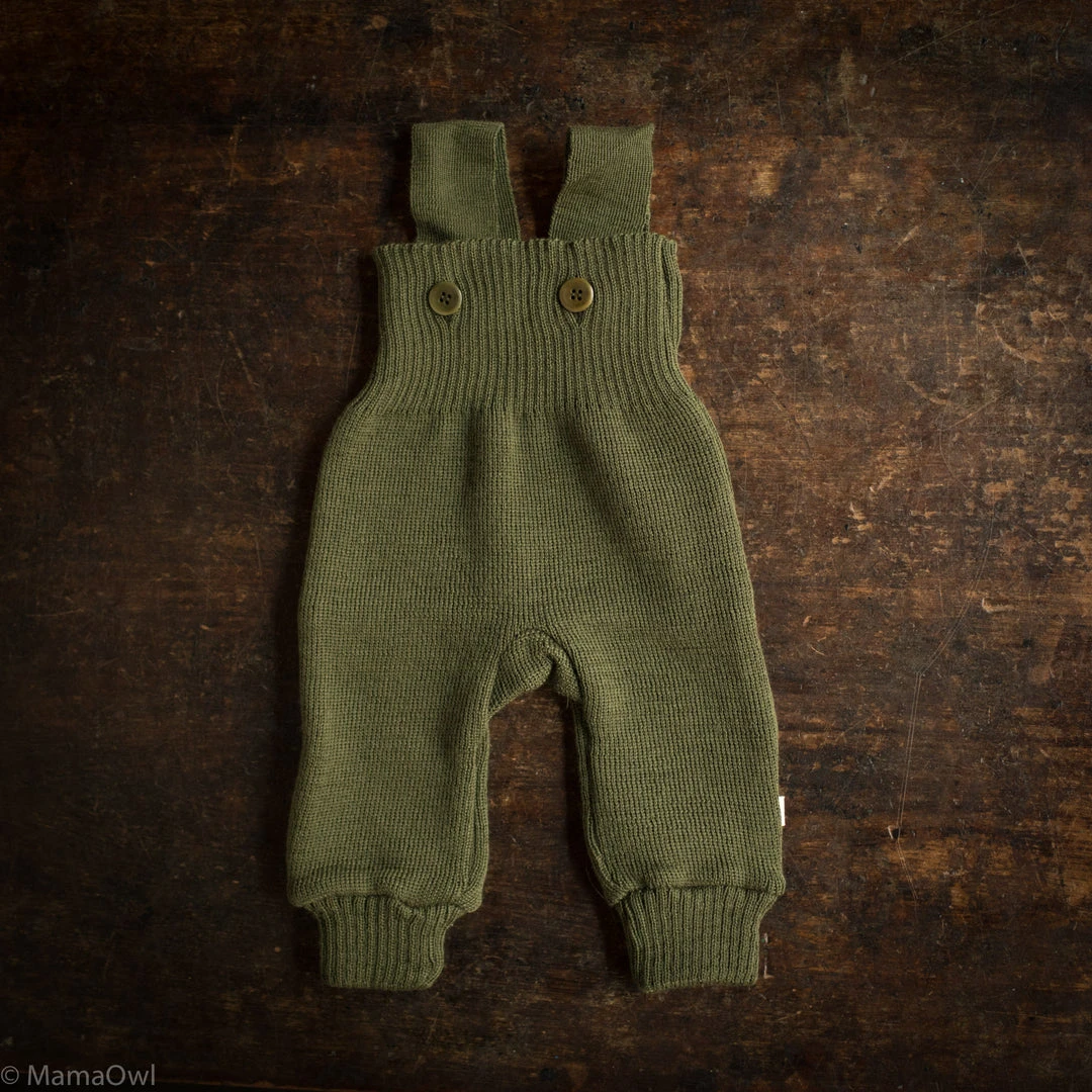 One of our most popular items. Chunky, thick knitted merino wool dungarees, perfect to keep