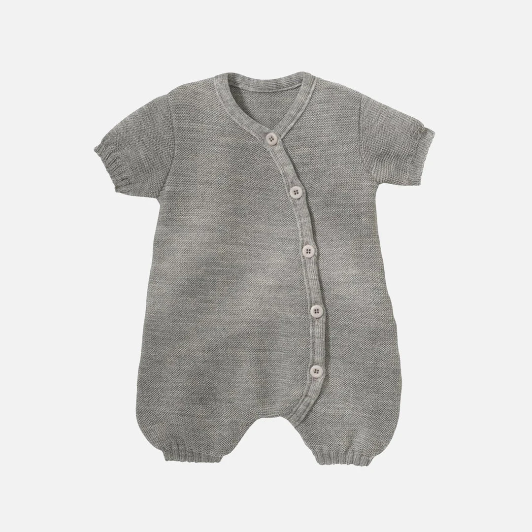 This lightweight romper is perfect for spring and summer. Made from a very soft stretchy knit which is incredibly comfortable and allows for ease of movement. Great on its own or styled with a pair of tights. Buttons down the front for easy dressing.