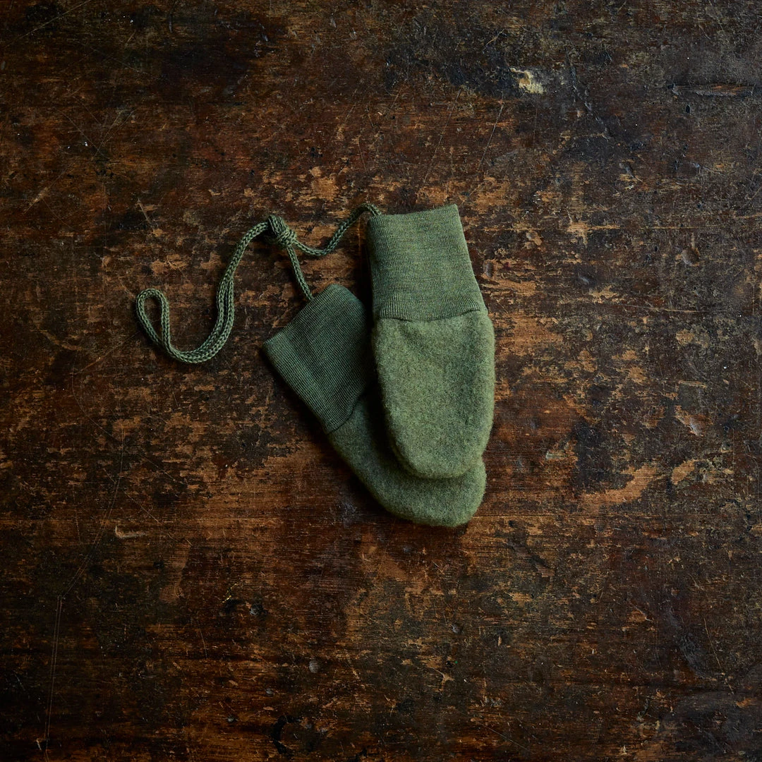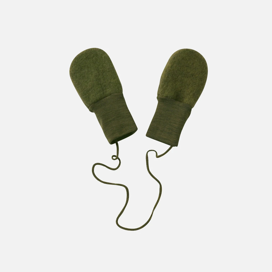These super soft wool fleece mittens are comfy and warm. Made without a thumb for ease of dressing small babies. The long soft cuff and connecting cord help these mittens stay on properly and stay in place. Thread the cord through the sleeves of a jacket or baby suit, so that you don’t loose them when out and about.