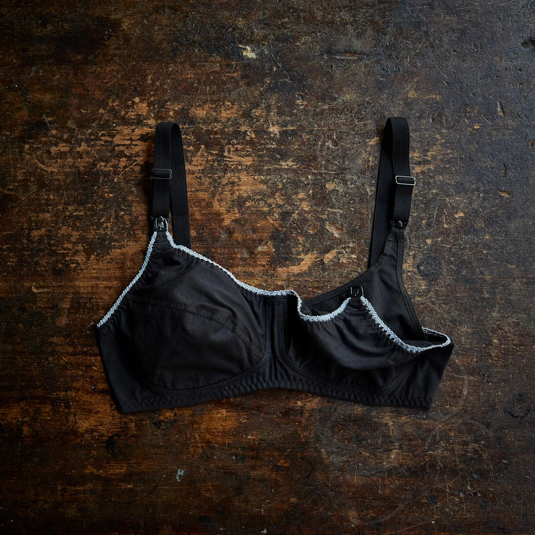 A soft and simple organic cotton nursing bra. Clips at the straps allow for ease of breastfeeding.
