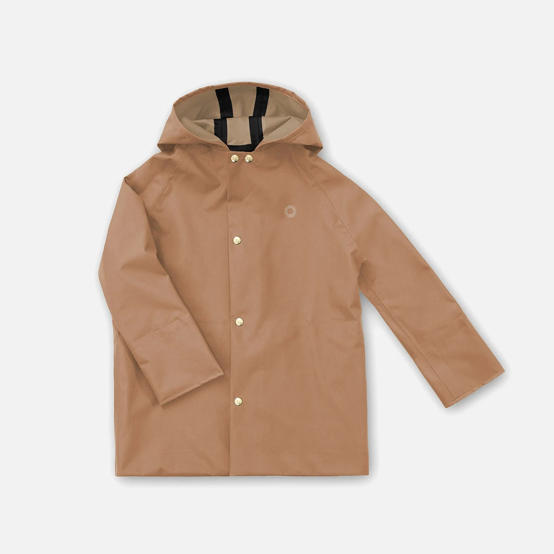 The Midi Raincoat is inspired by the classic Mackintosh. It is made from 100% waterproof fabric, incorporating raglan sleeves for ease of movement.