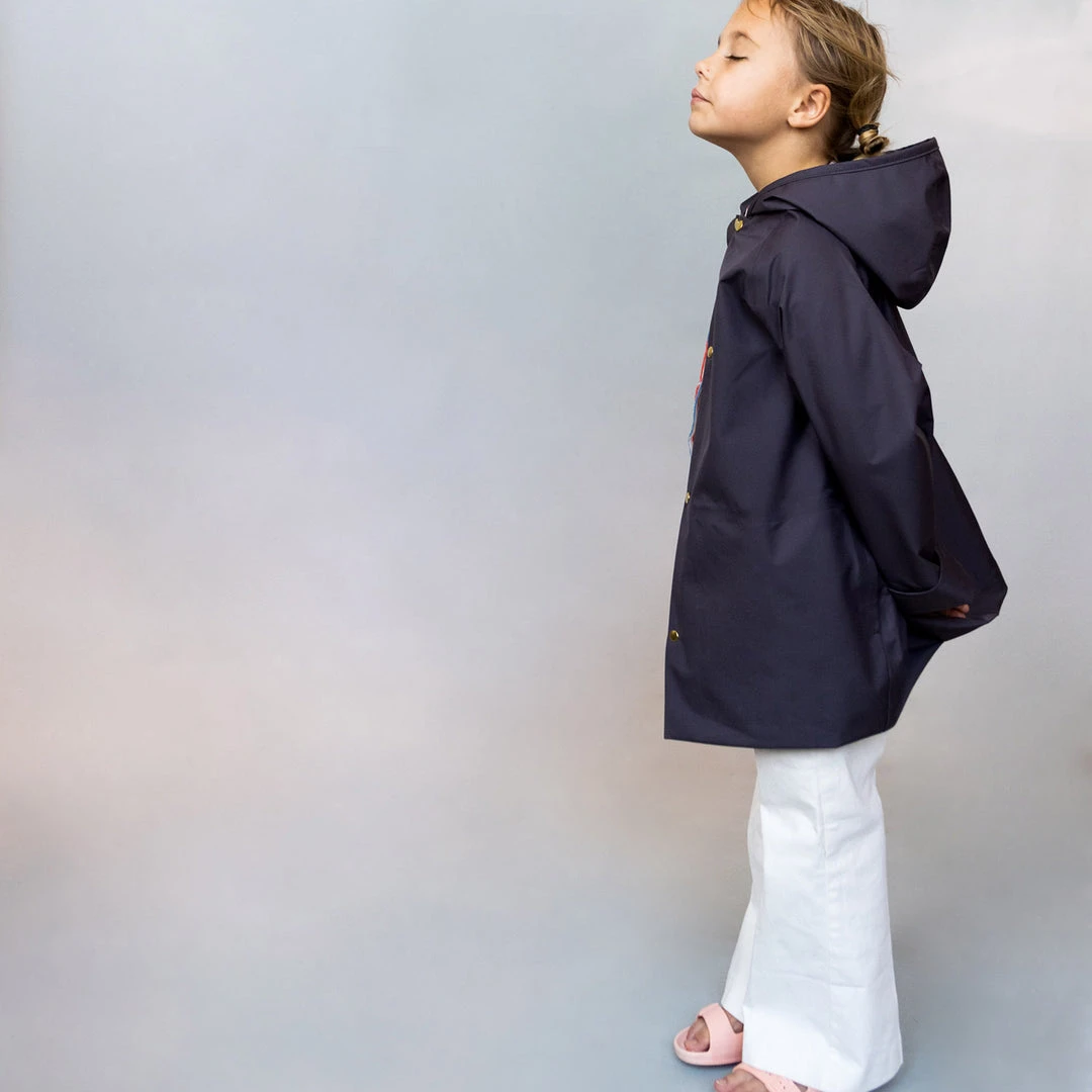 The Midi raincoat is one of Faire Child’s most popular styles. It is made 100% waterproof fabric, incorporating raglan sleeves for ease of movement. Deep side pockets are perfect for tucking hands and keeping essentials safe.