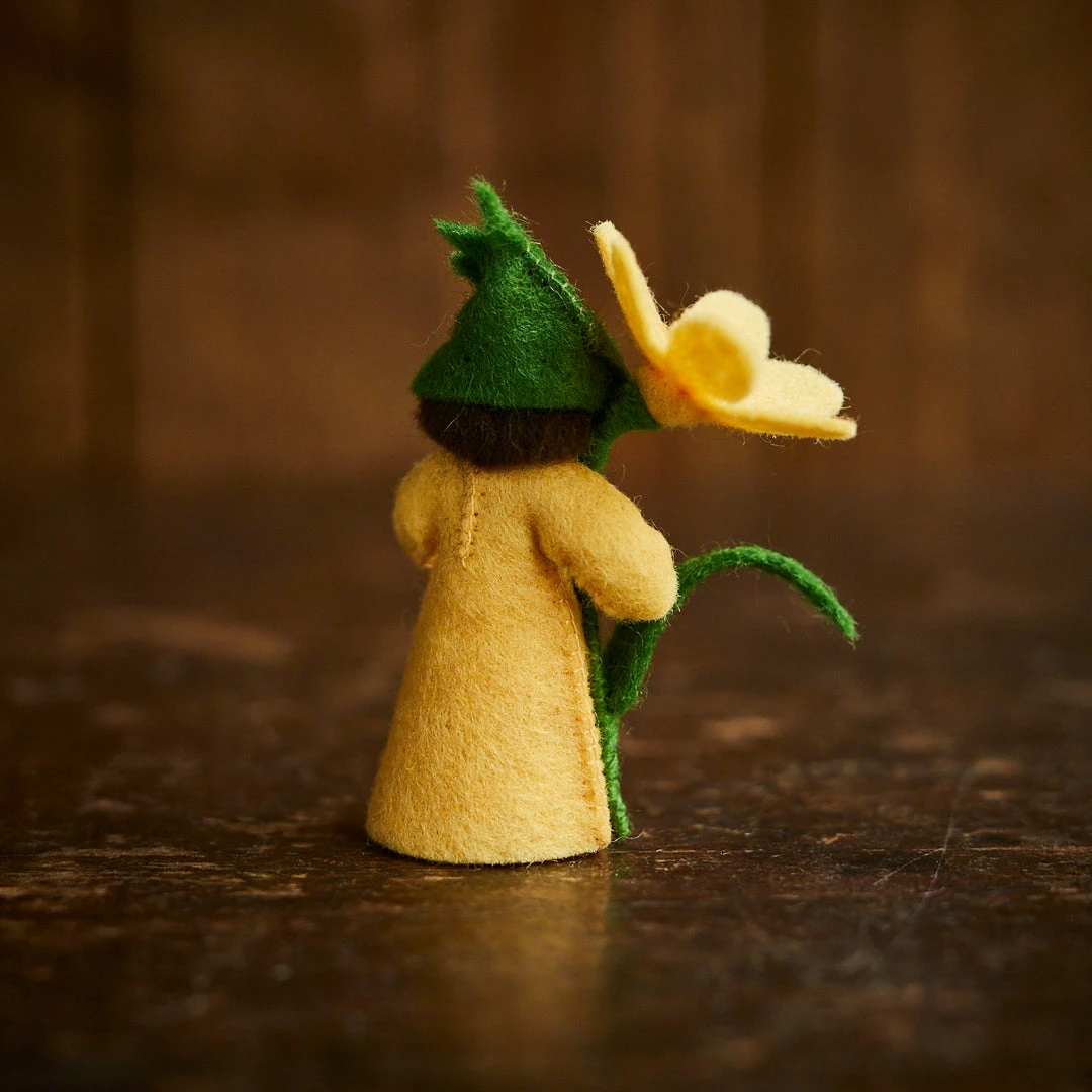Little handmade flower fairies, made of wool felt and crafted in Romania. Spring flower Crocus.