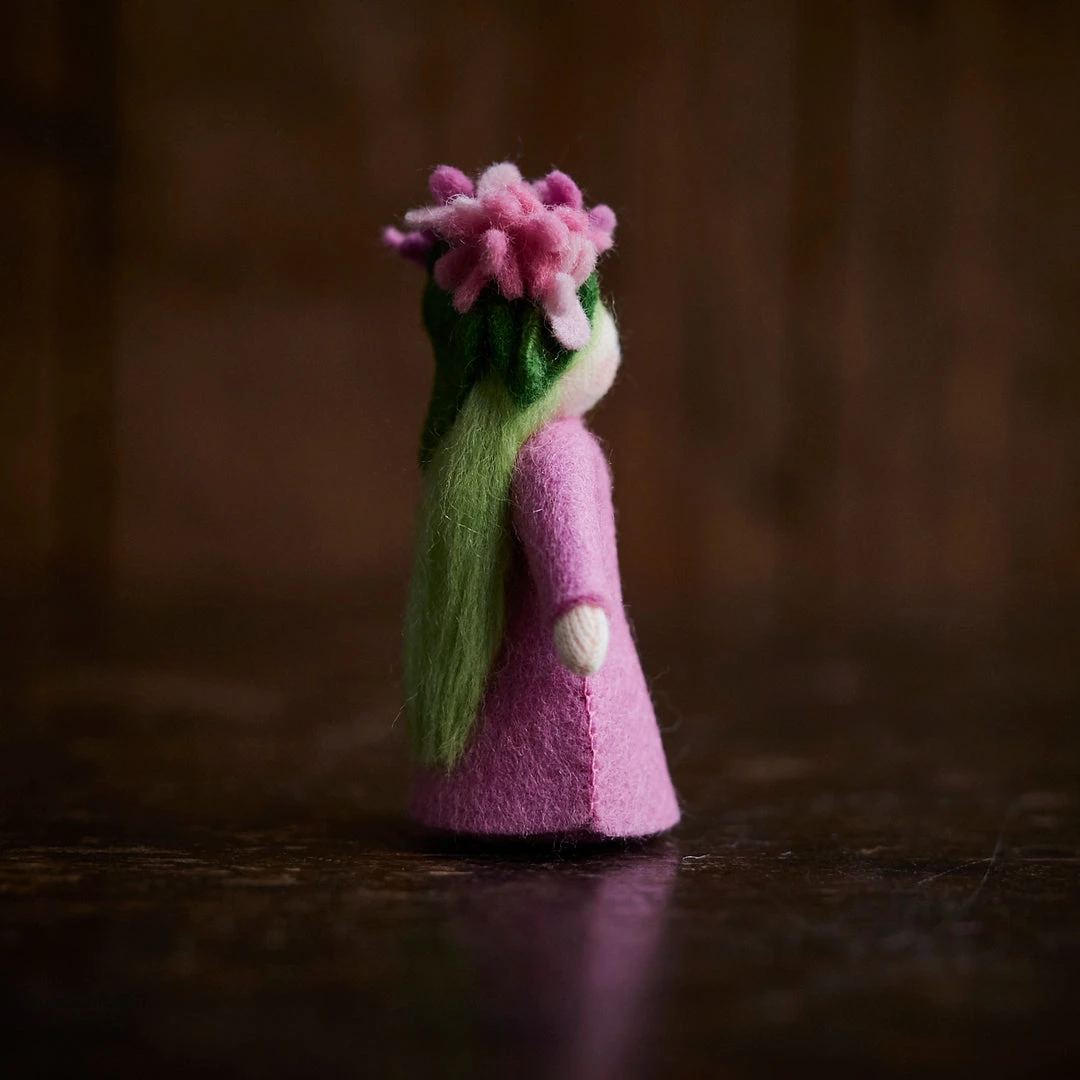 Little handmade flower fairies, made of wool felt and crafted in Romania. Spring flower Lilac.