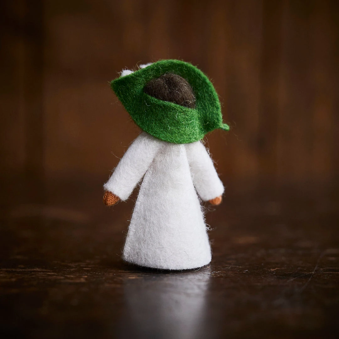 Little handmade flower fairies, made of wool felt and crafted in Romania. Spring flower Lilly of The Valley.