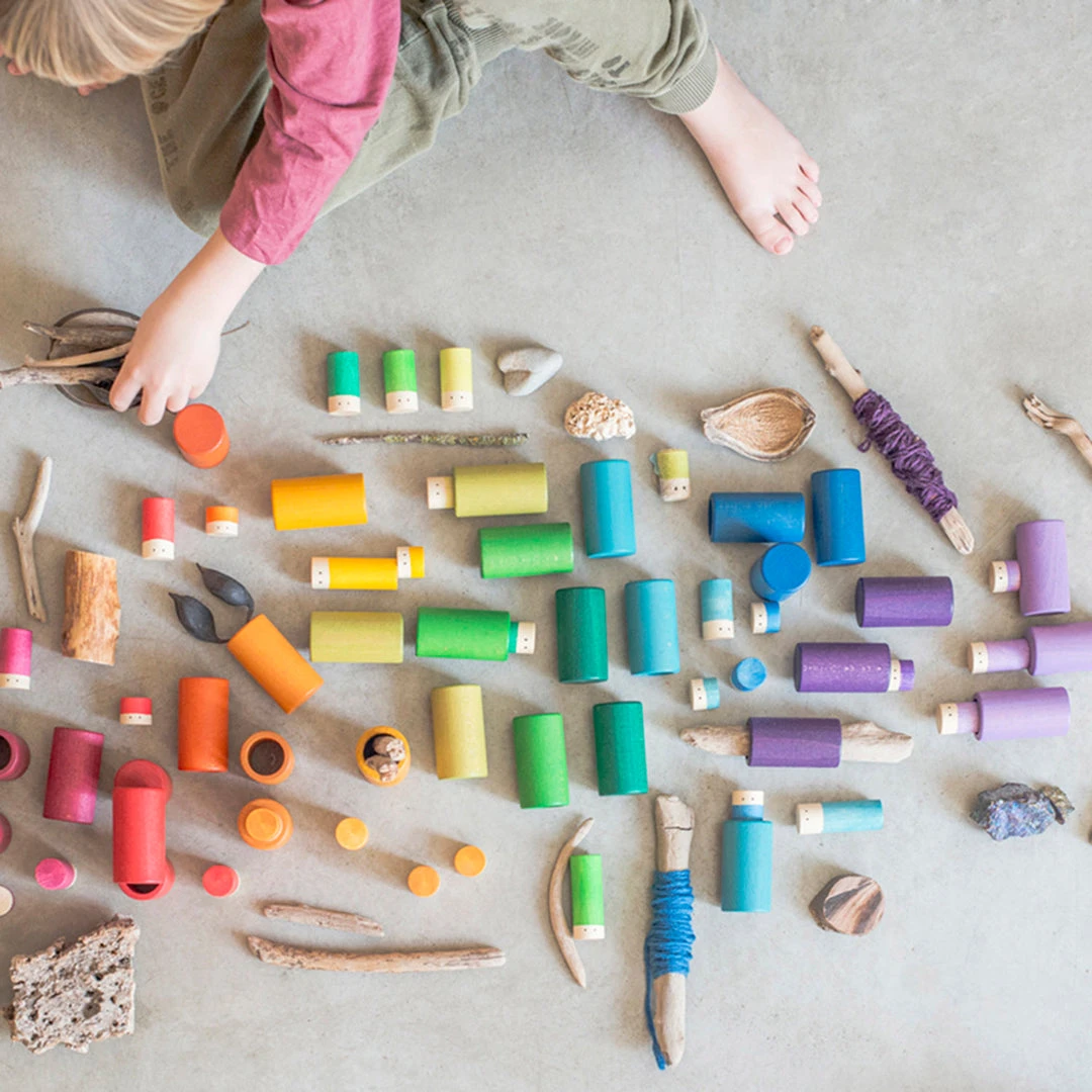 The Wooden Lola Playset consists of 72 different wooden pieces which provides versatility and variety in play. It encourages creative and divergent thinking. Some of the pieces can be seen as trees, buildings and cars, the possibilities are endless. This Playset also help the development of logical and mathematical thinking by allowing the child grouping the different pieces by colour, and shape.
