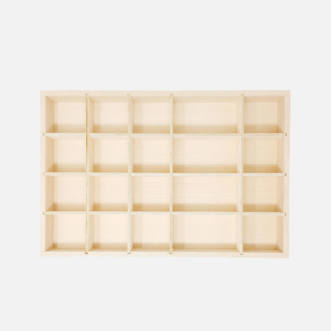 This tray with dividers allows to offer a great variety of materials at the same time. The compartments, contain and limit so the children can sort and classify all those small elements that are part of their environment. Measures: 440mmx295mmx45mm