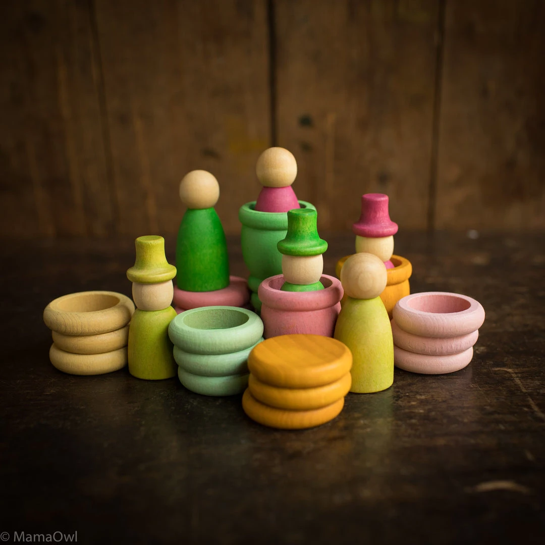 It contains: 3 Nins, 3 Nins with top, 3 cups, 9 rings, 9 coins.