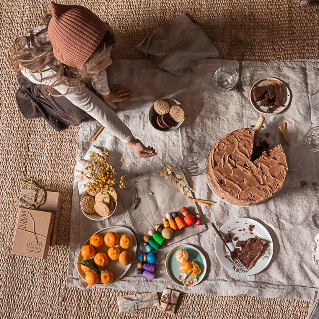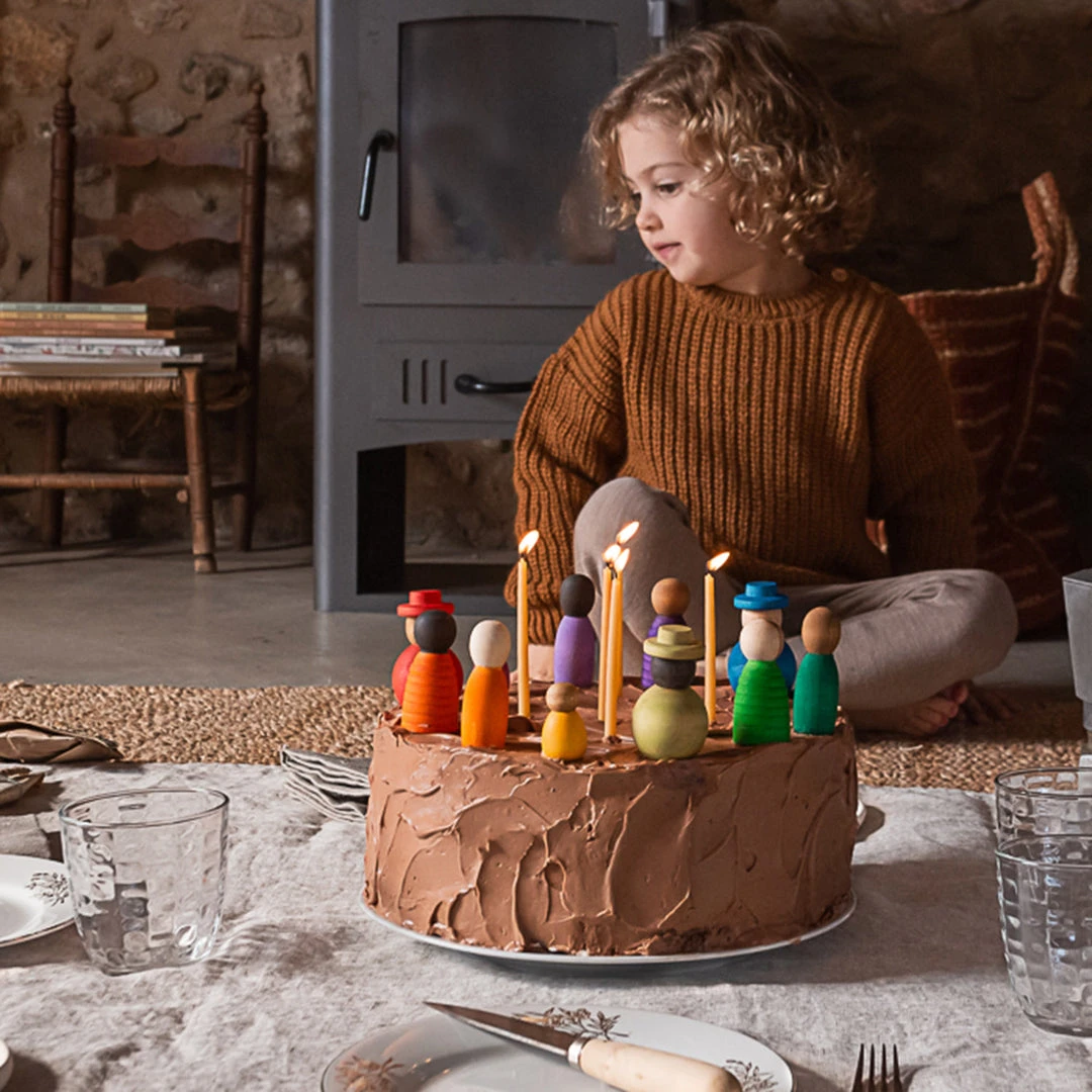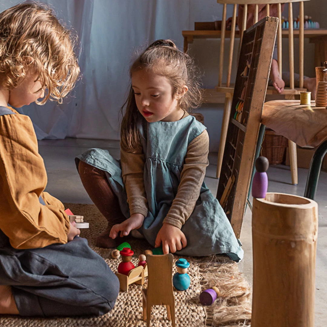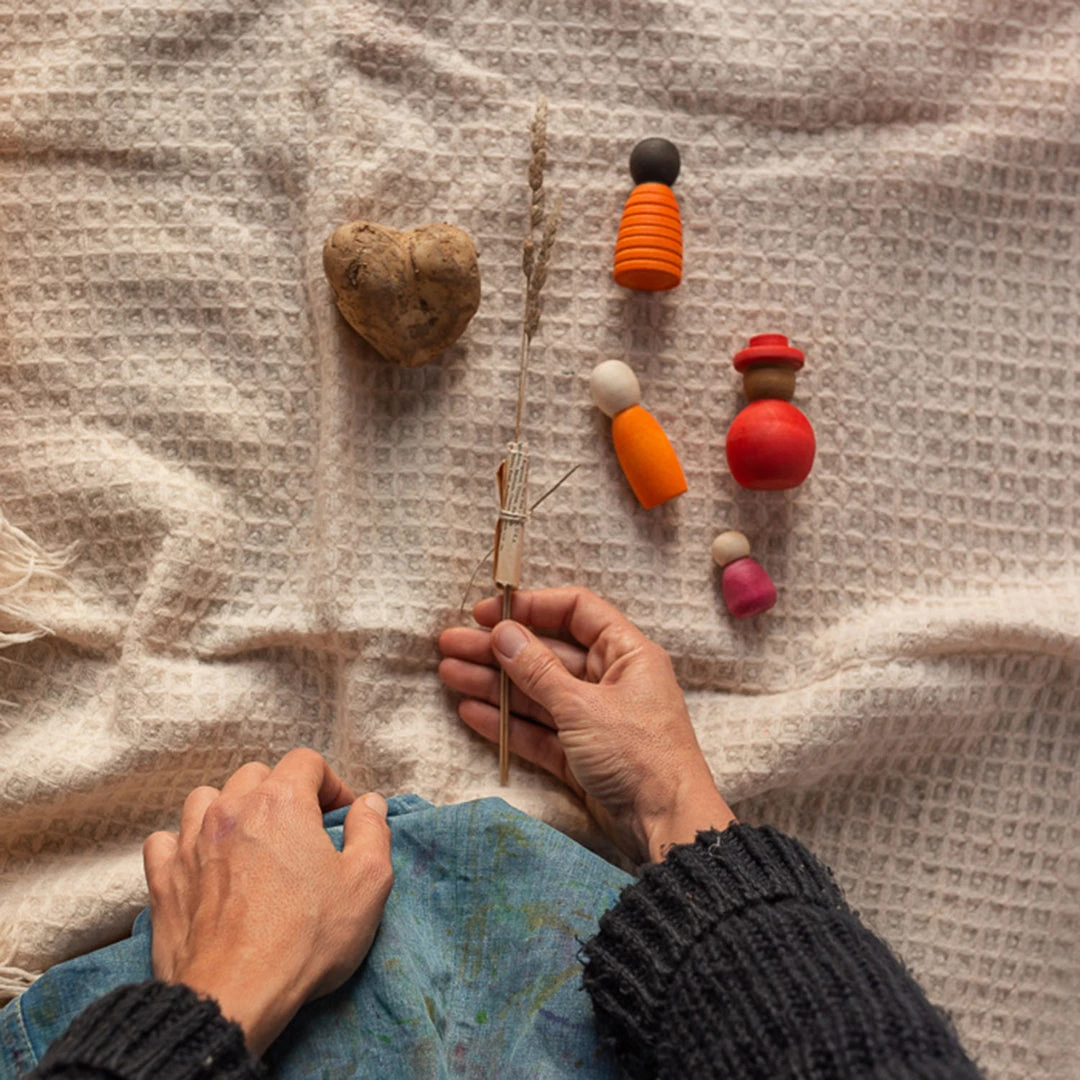 Together is about celebrating the beauty of human diversity in all its colours, shapes and sizes. This stunning set of 12 Nins contains 3 skin tones, 3 Nins that are narrow, 3 that are wide, 3 nins that are striped and 3 baby nins, all packaged in a eco-friendly fabric bag.