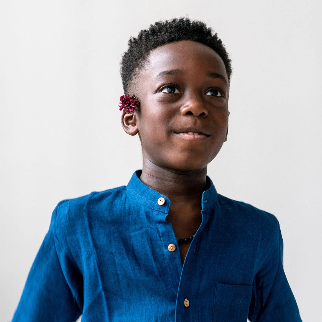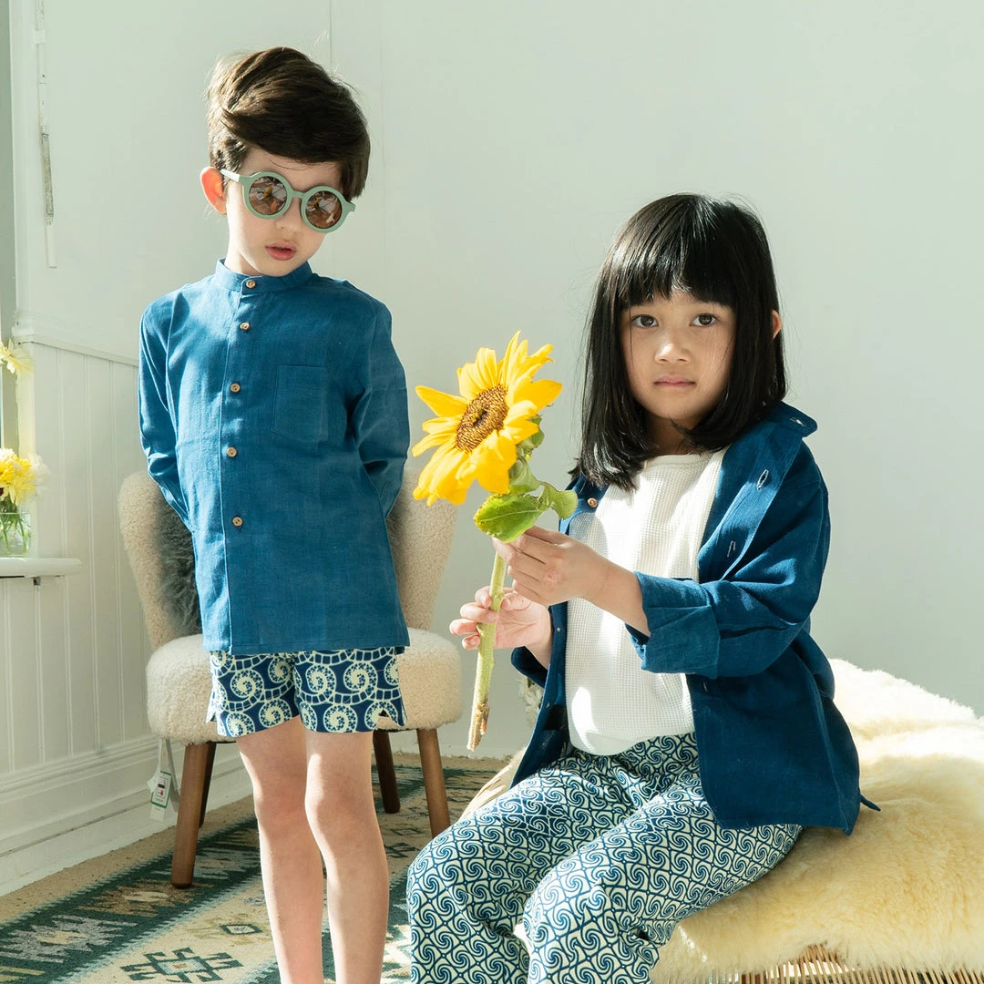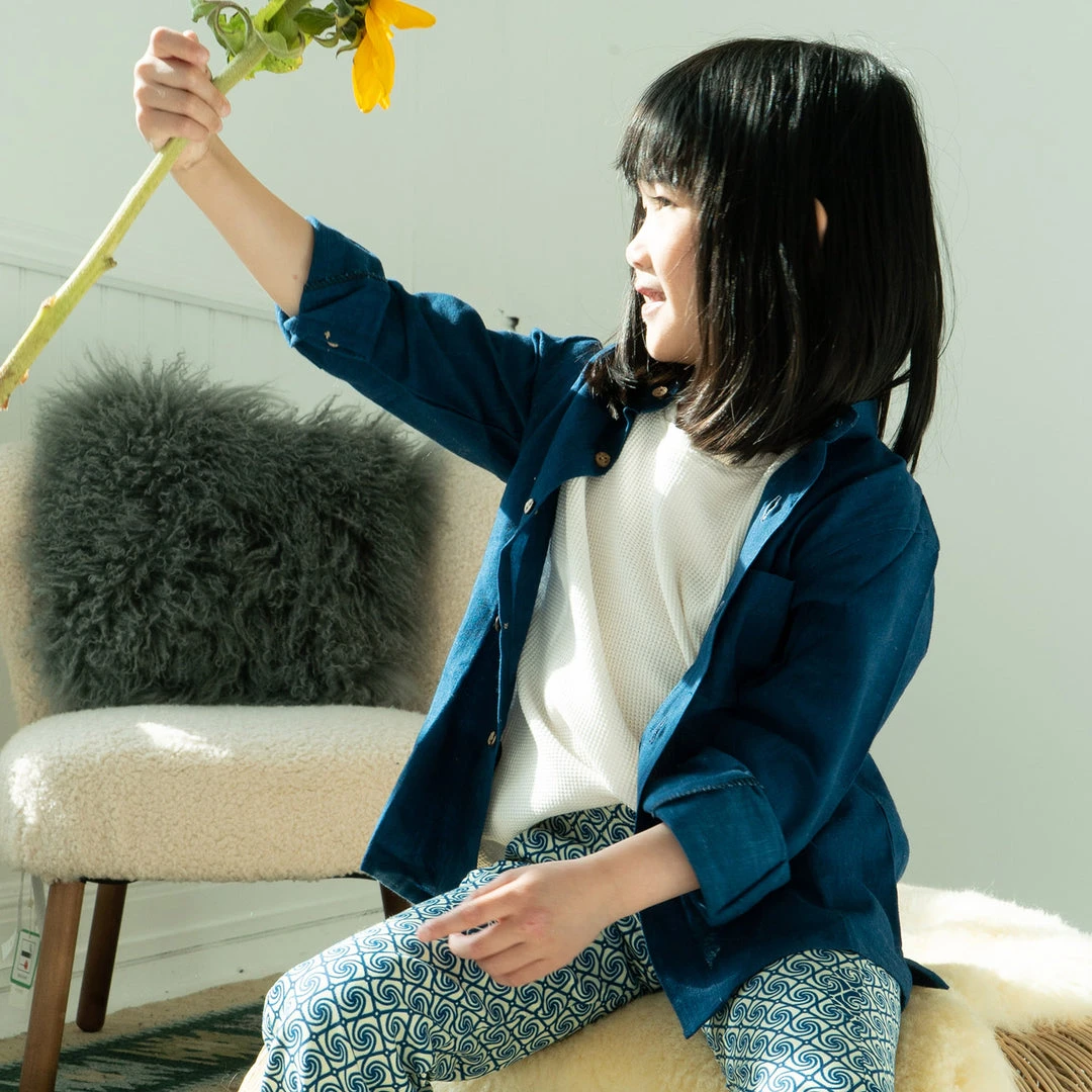 This classic and timeless shape shirt is a great all year round style. Easy to style smart or casually. Buttons down the front and at the sleeve cuffs. Available in three different Indigo shades. Each item can vary in tone as the fabric is dyed entirely by hand and in batches. This is the beauty of indigo dying as each item will be naturally unique.