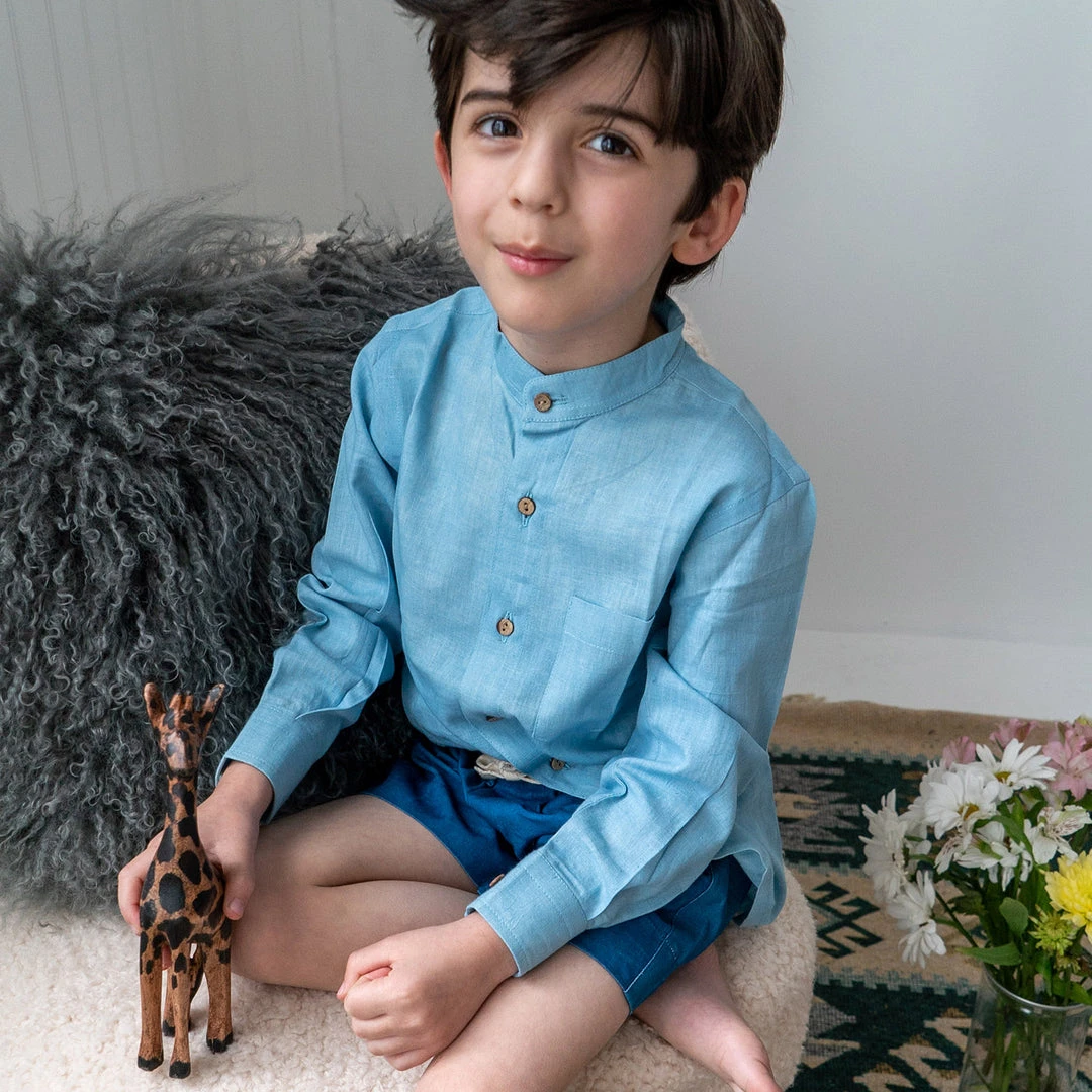 This classic and timeless shape shirt is a great all year round style. Easy to style smart or casually. Buttons down the front and at the sleeve cuffs. Available in three different Indigo shades. Each item can vary in tone as the fabric is dyed entirely by hand and in batches. This is the beauty of indigo dying as each item will be naturally unique.