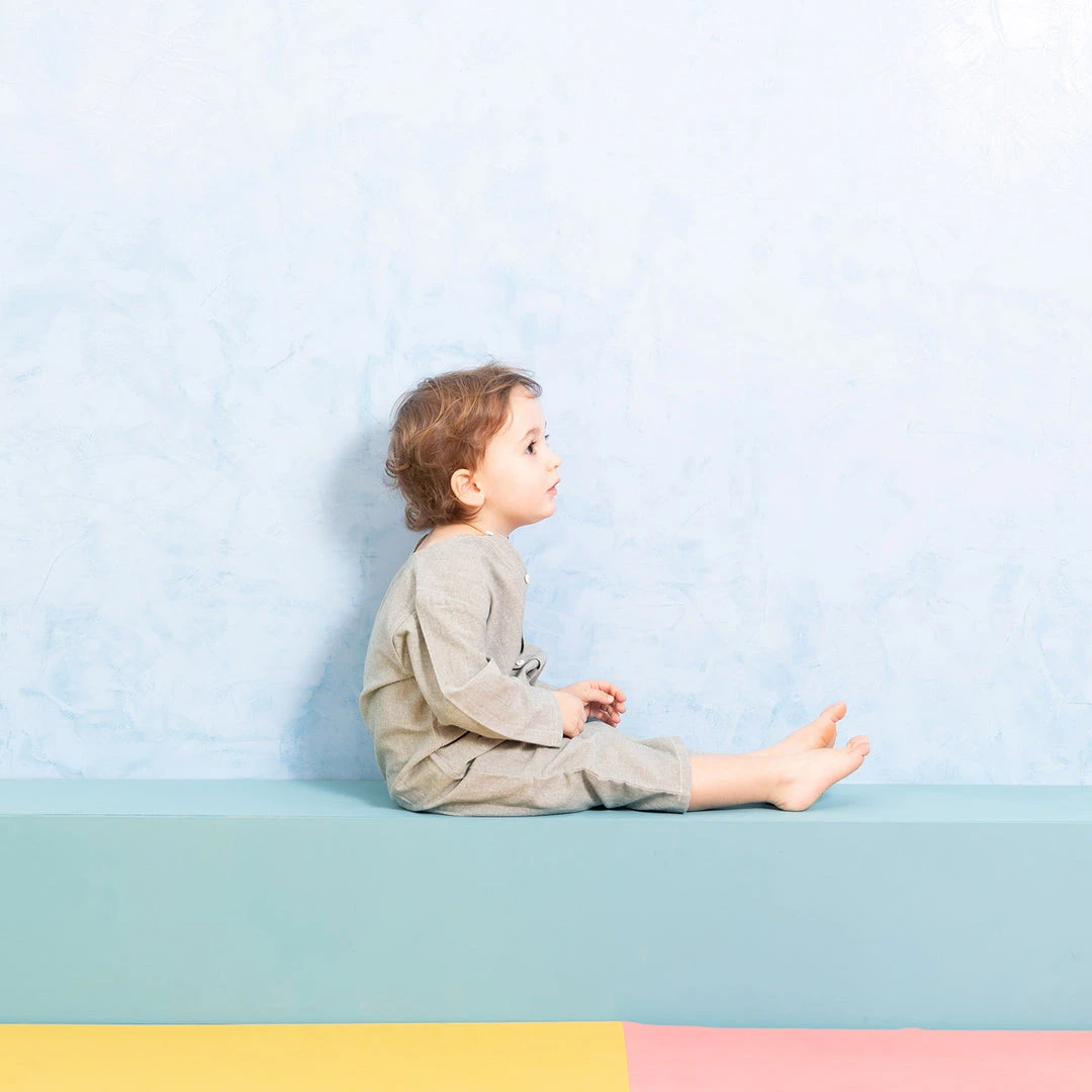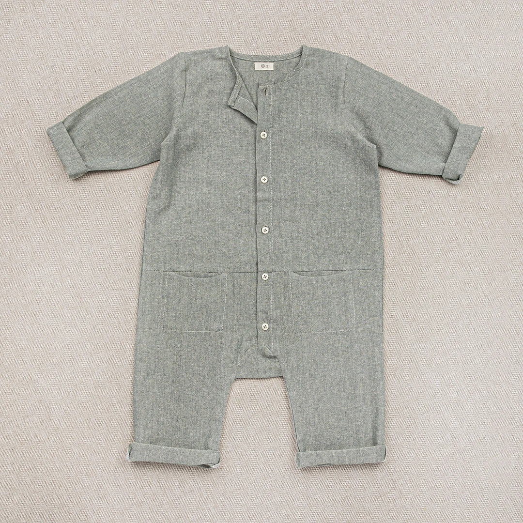 Soft overalls, perfect for summer. Features long sleeves and buttons down the front. Designed to feel comfortable and easy to move around in. The beautiful hand woven fabric has the most wonderful mid weight and hand feel.