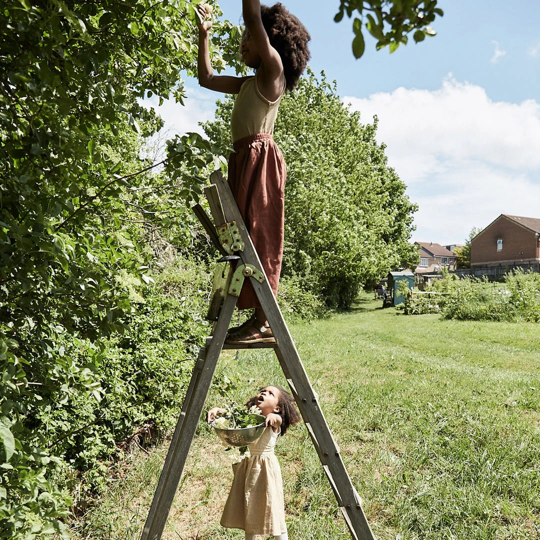 Apron style dress, open back with crossover straps, back elastic and gathered skirt with side pockets. This dress is are made from hand woven fabric.