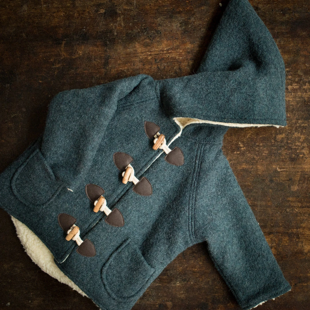 Lovely winter coat with Pixie hood. These are made from a lightweight wool