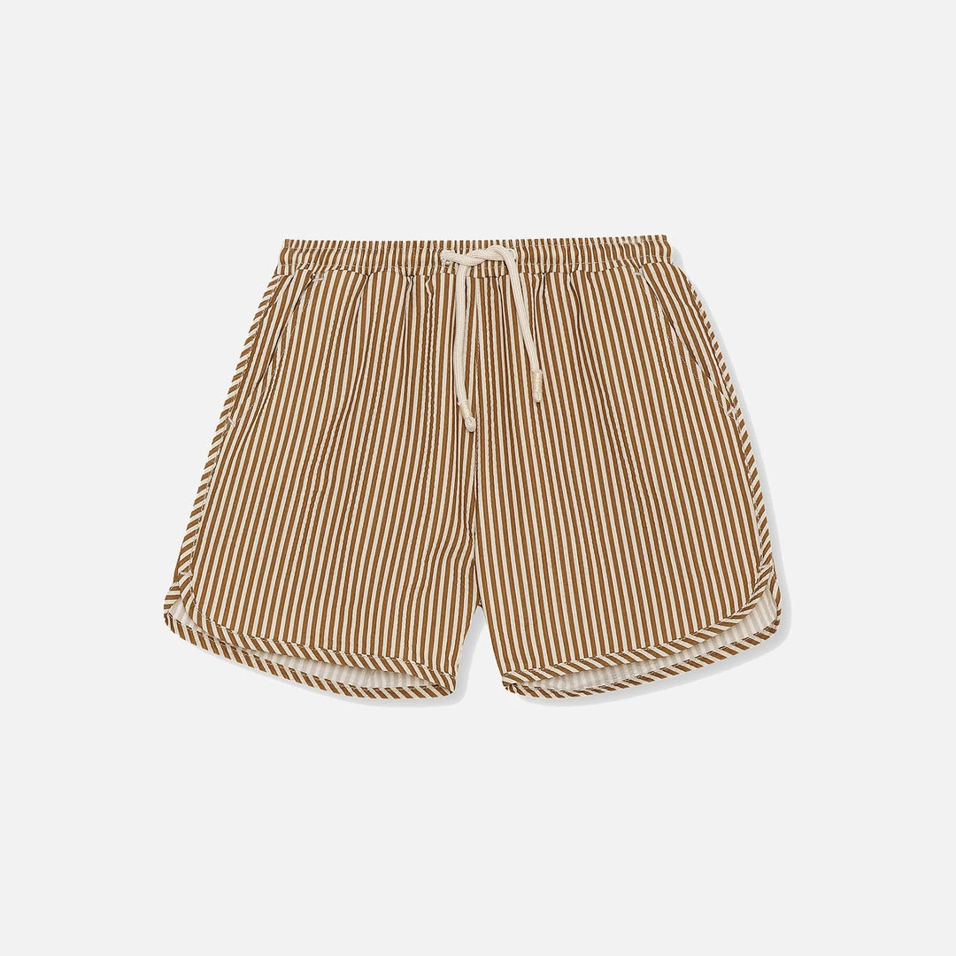 Swim shorts made from 61 percent recycled polyester and 39 percent polyester. Designed with front pockets, an elasticated waist and waistband. The swim shorts feature slits on the sides for added movability.