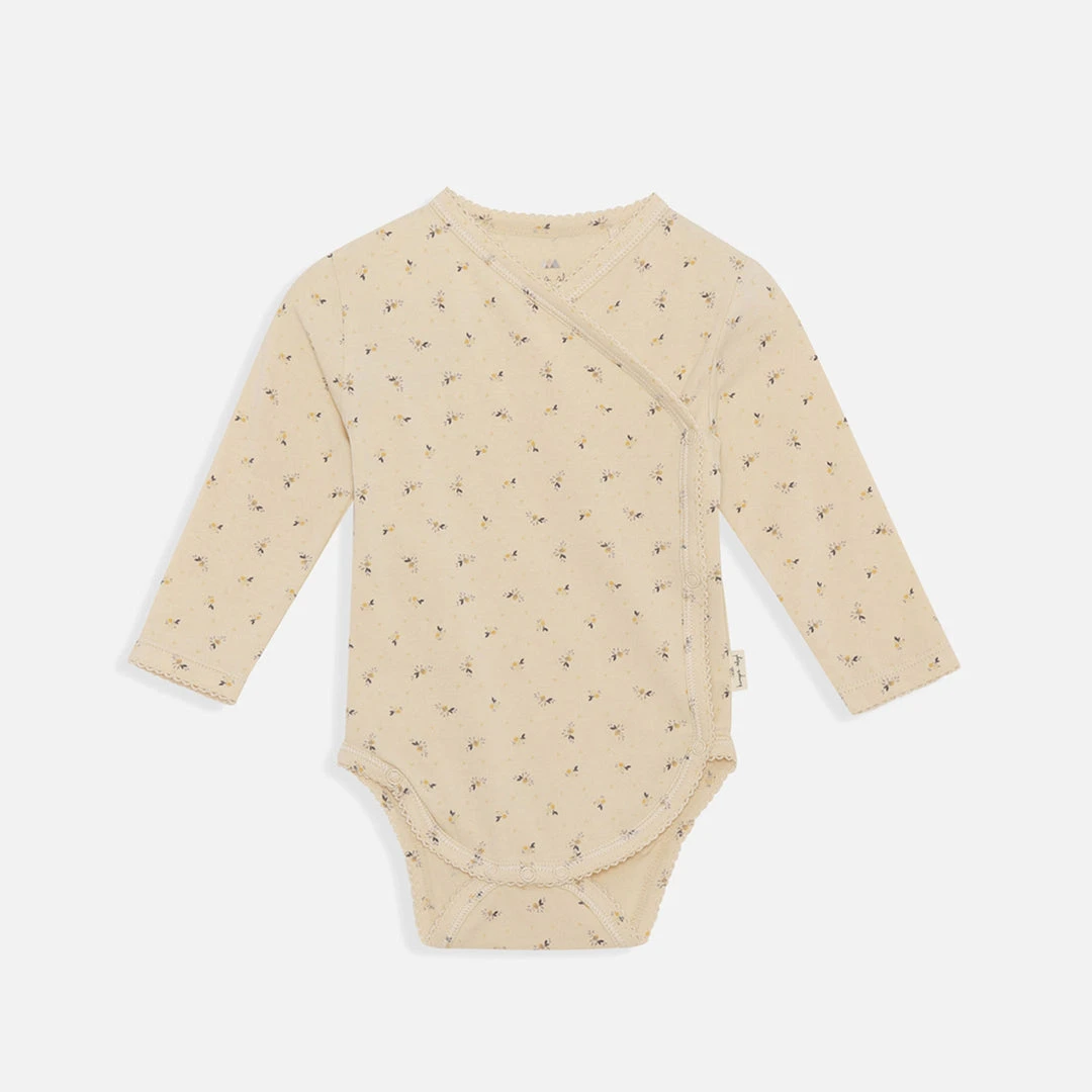 Konges Slojd’s basics are much loved items due to their simple sweet prints and the super soft organic cotton material. This long sleeved wrap body designed with a hint of stretch. Features press studs along the sides and crotch making it easy to wrap around your little baby.