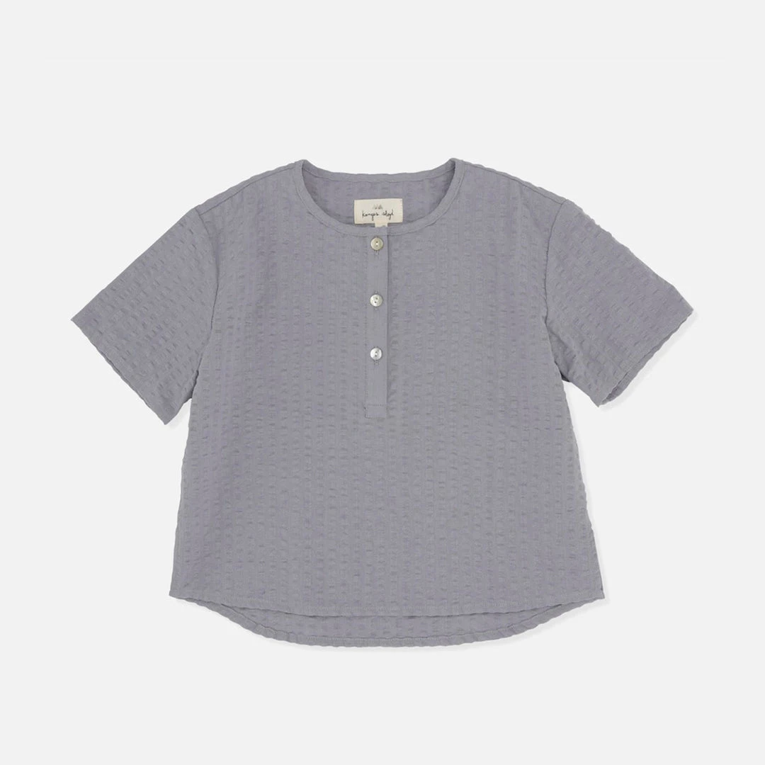 This classic short sleeved shirt is designed with a simple round neckline and mother of pearl buttons. Lightweight and perfect for summer.