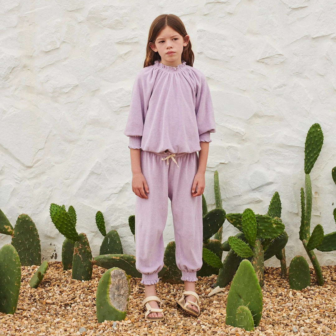 Super soft trousers with an elasticated waist and tie for an adjusted fit. Knitted in a soft organic cotton terry.