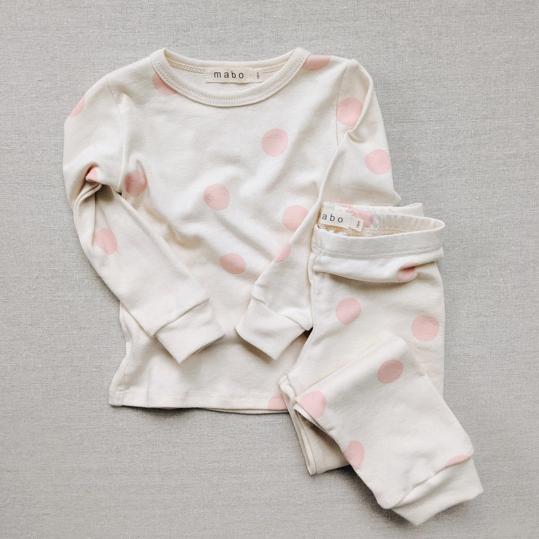 One of Mabo’s signature pieces. These spot pyjamas are very distinctive. Great quality, soft cotton and perfect unisex styling.