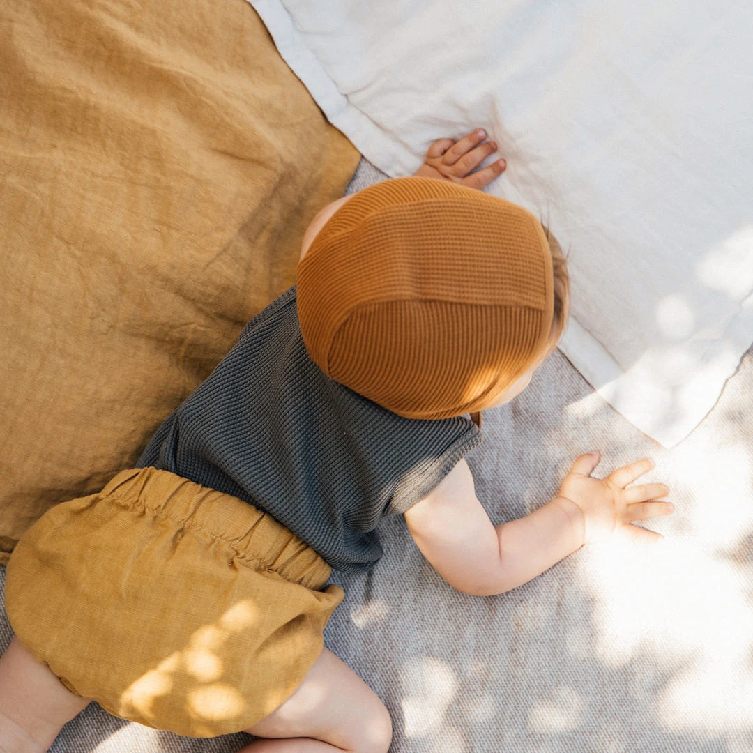 This beautiful soft and lightweight waffle knit bonnet offers shade from the sun or shelter from cooler breezes. Easy to wear and style. Perfect for spring and summer days.