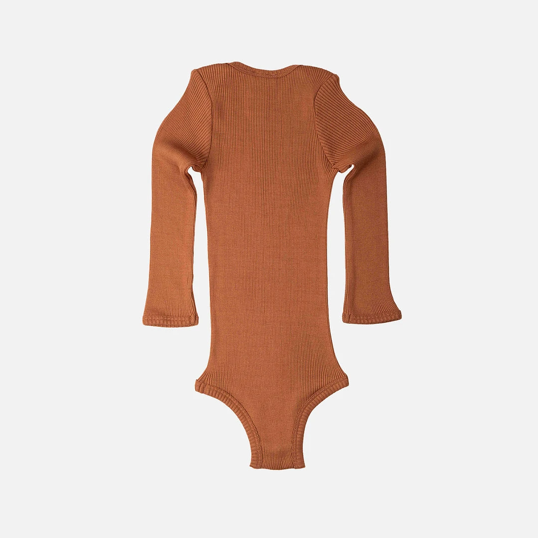 Soft seamless long sleeve body with envelope neck opening. Features YKK nickel-free snap buttons for easy dressing. Made in a soft silk-cotton blend making it great for sensitive skin.