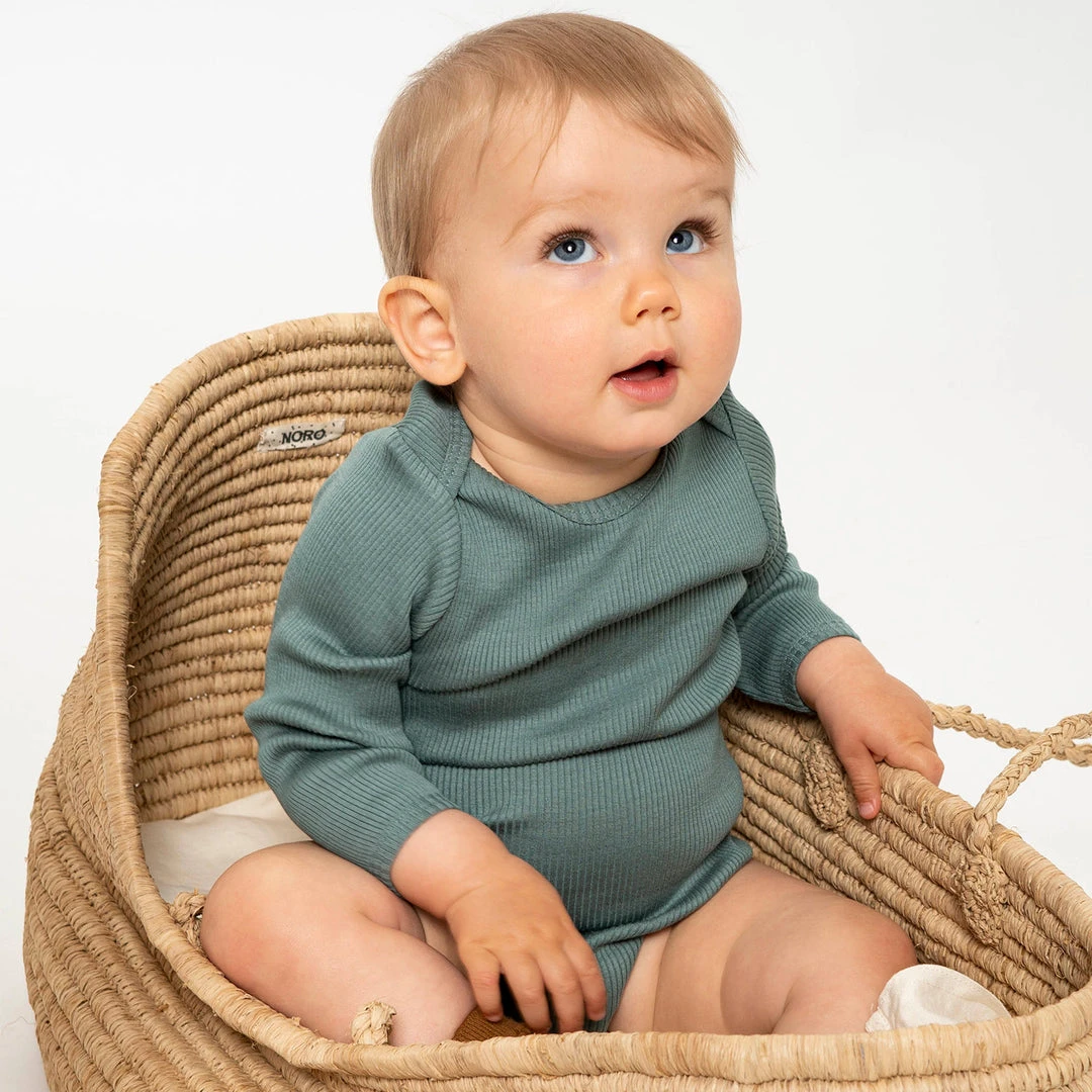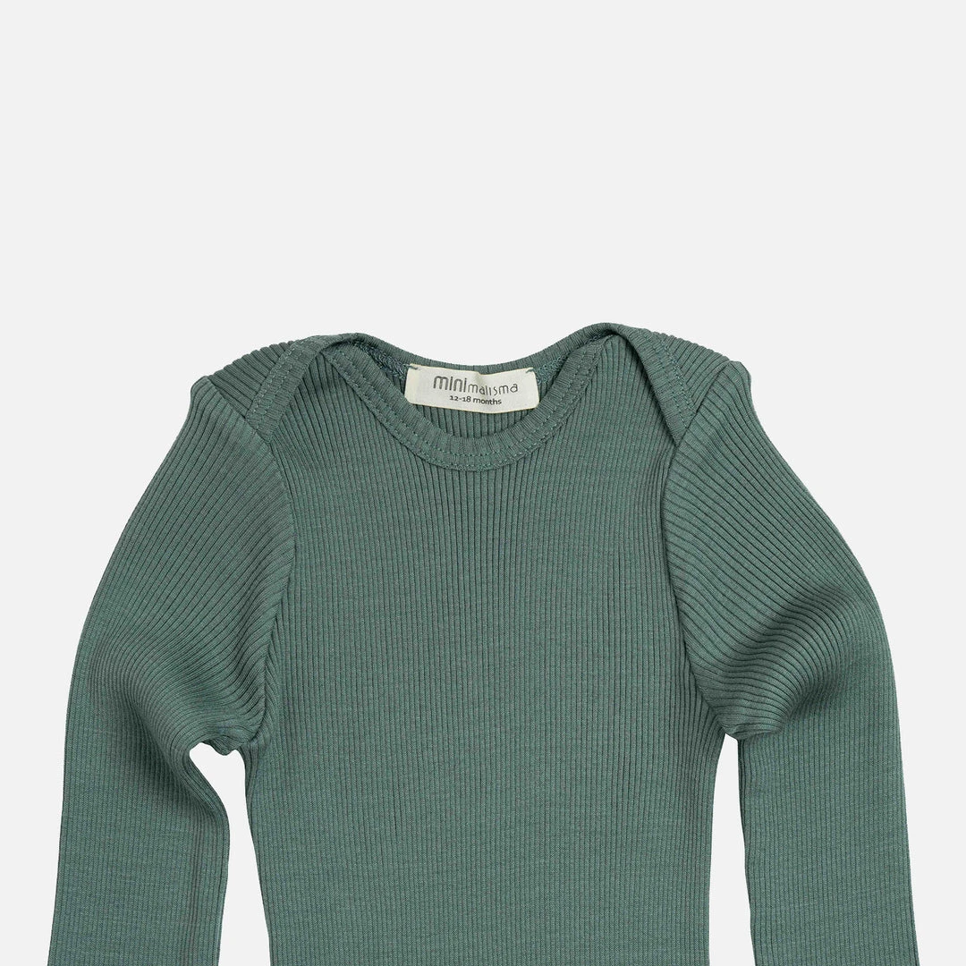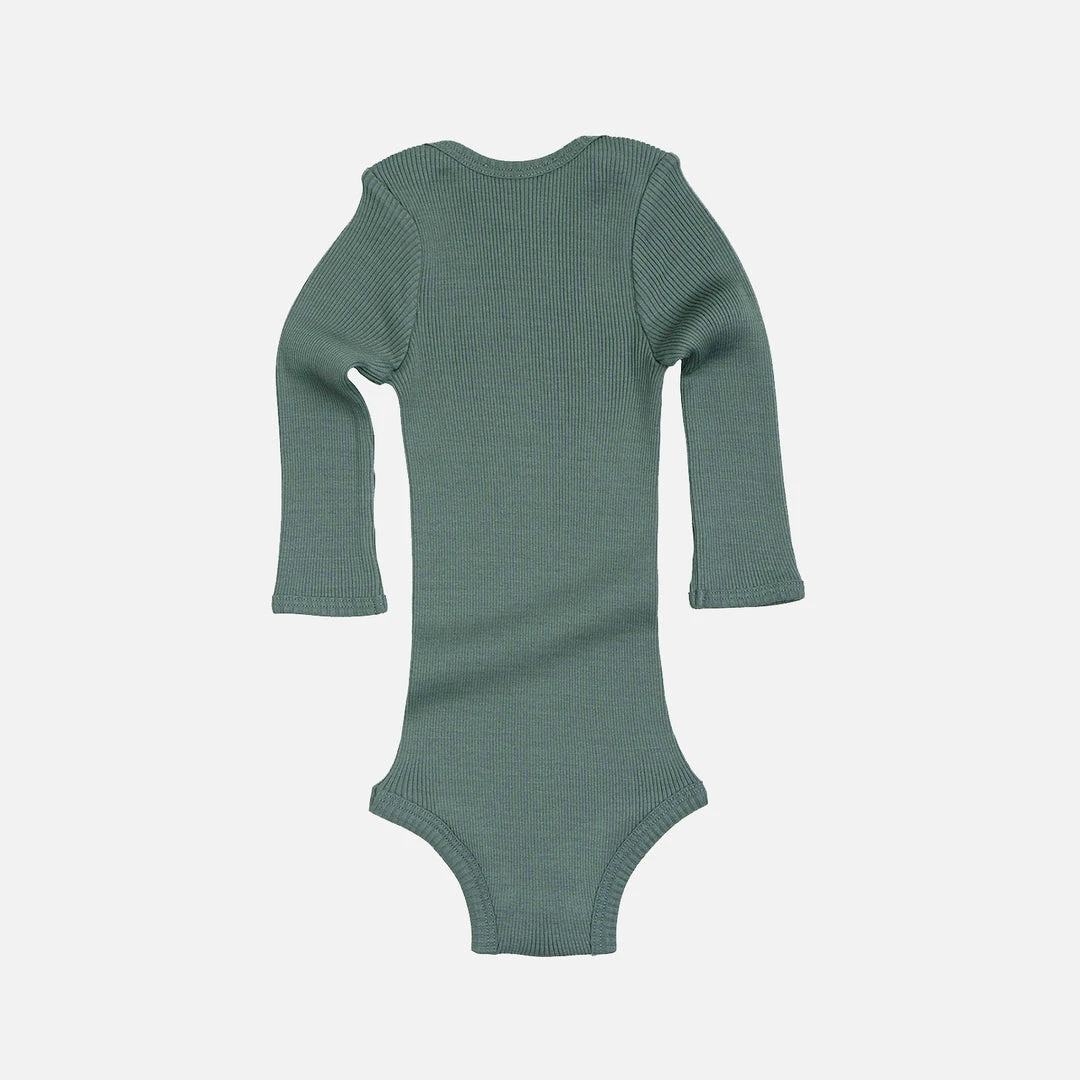 Soft seamless long sleeve body with envelope neck opening. Features YKK nickel-free snap buttons for easy dressing. Made in a soft silk-cotton blend making it great for sensitive skin.