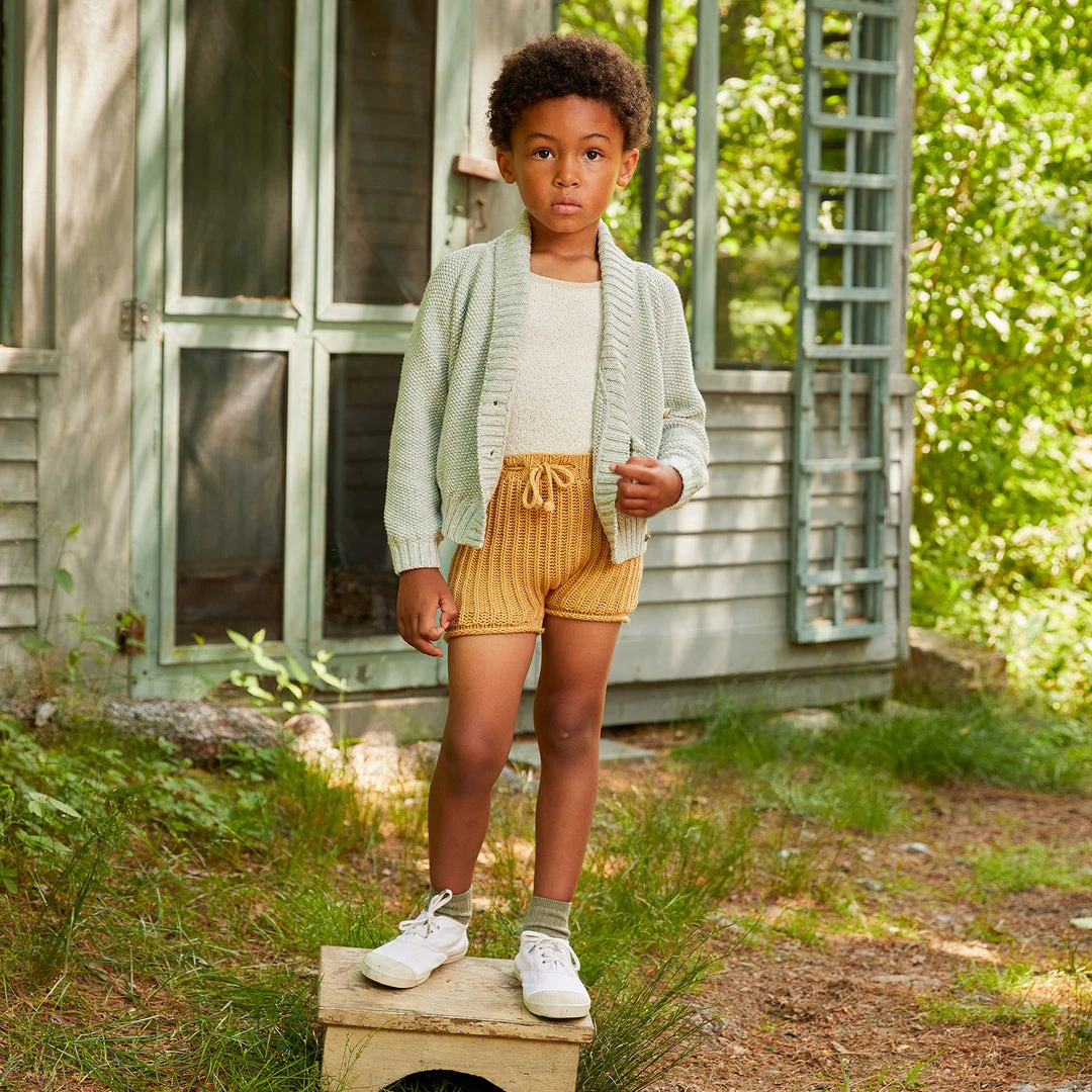 The classic crossover cardigan is a Misha & Puff favourite. It features raglan shaping with horn buttons and an interior tie closure for a perfect fit. This makes a perfect layering piece for your little one’s favourite outfit.