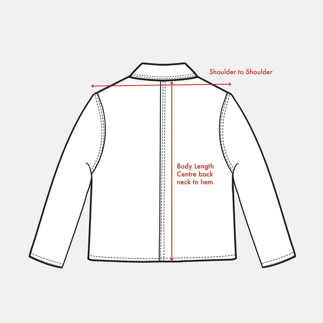 FIT: Classic fit, Single breasted with square cut and straight hem. Simple non fastening cuff to allow for rolling up sleeves. The size number (e.g. 32″) on the label relate to an advised chest size in inches (not the physical width of the garment).