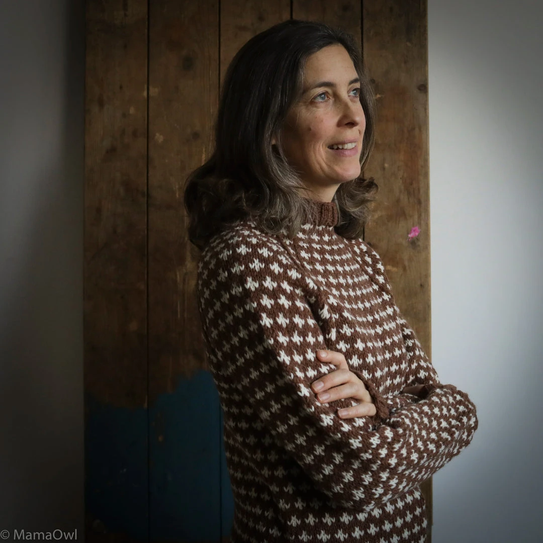 The model in the photo is 5ft6″ and wears a size M Knud sweater. She usually wears a UK10-12.