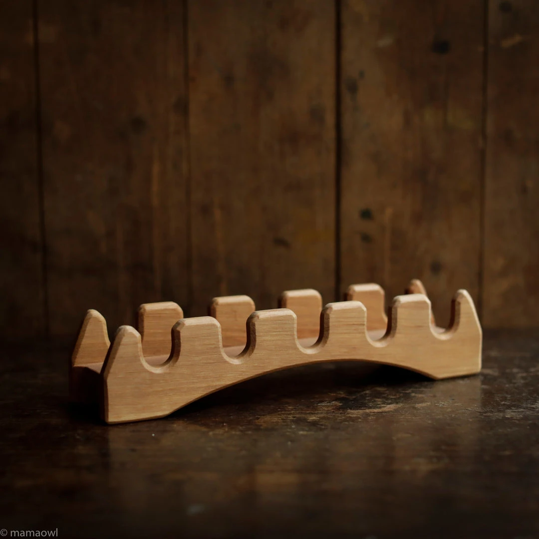 This beautiful handcrafted connection bridge can be used on its own or added to other castle and wall sections to create a secure boundary wall. It is designed to sit over the portcullis and connect to two round towers. The bridge is 31,5 x 7,8 x 7 cm.
