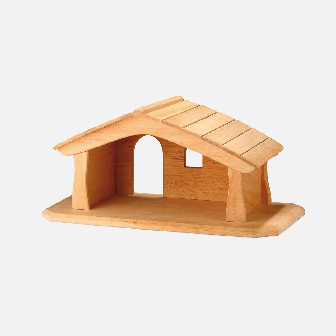 Perfect for Ostheimer baby farm animals or the flower fairies or as a little dolls house, this also makes a perfect nativity stable. An open-faced stable handcrafted in wood. This is created as an open shape and beautiful surround for human and animal figures, so that children can invent and immerse themselves in storytelling with various figures.