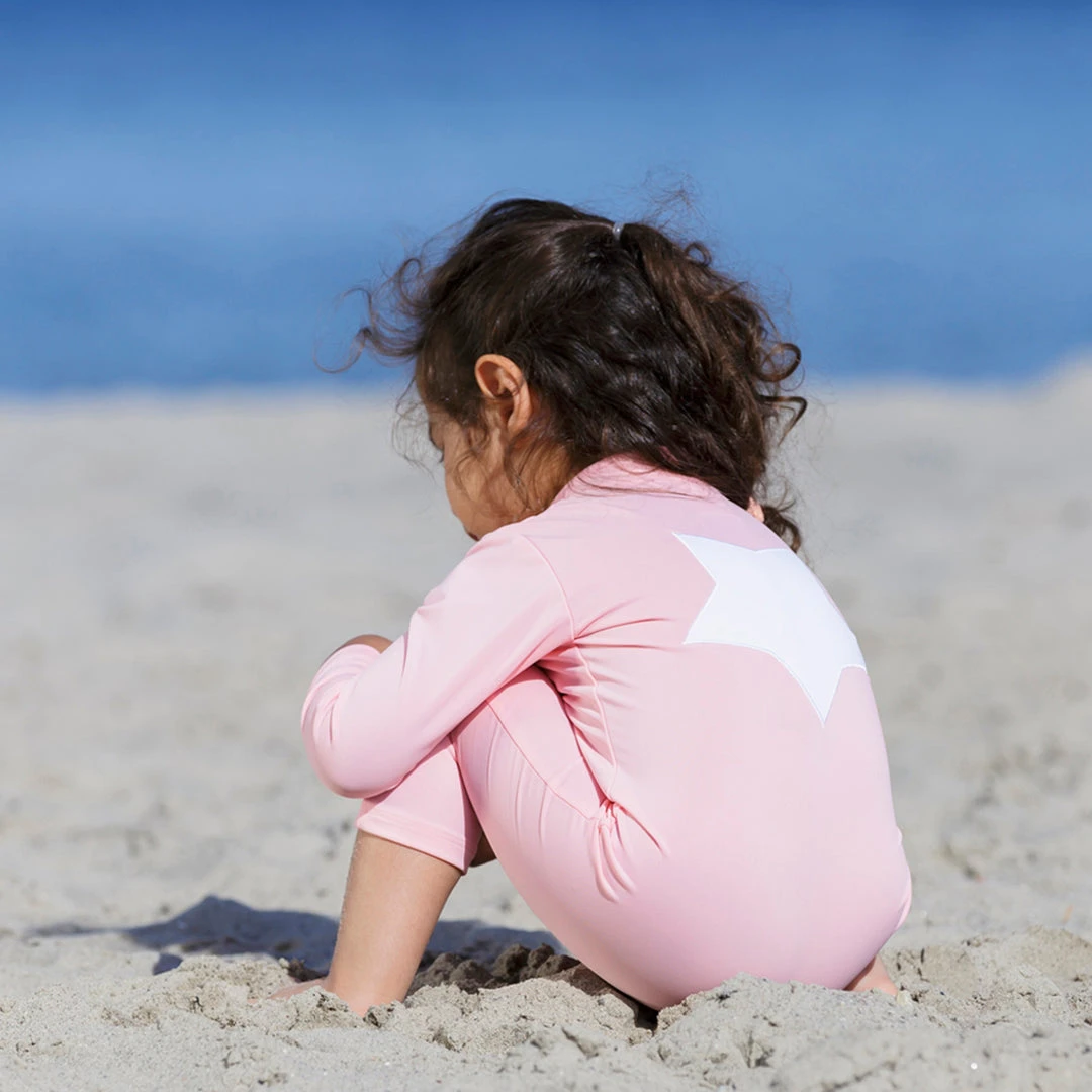UV full bodysuit with long sleeves and legs, YKK zipper and star appliqué Combine with a hat for maximum protection. If you are uncertain about which size to choose, you can see the detailed measures in our size guide.