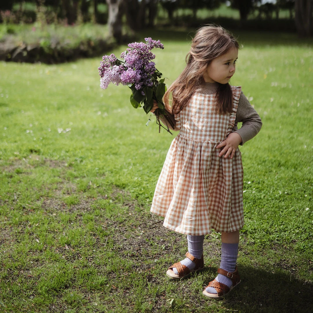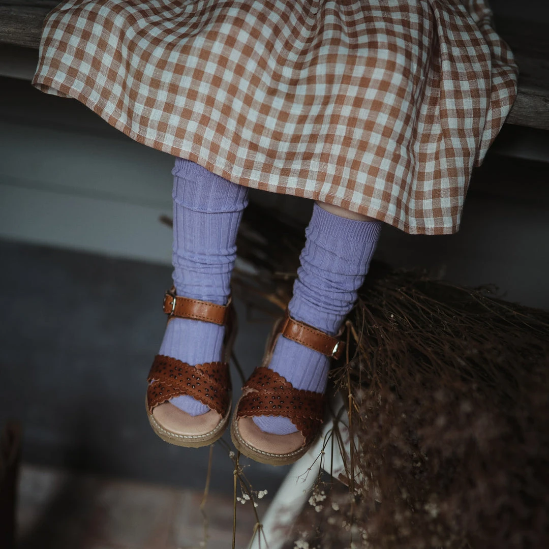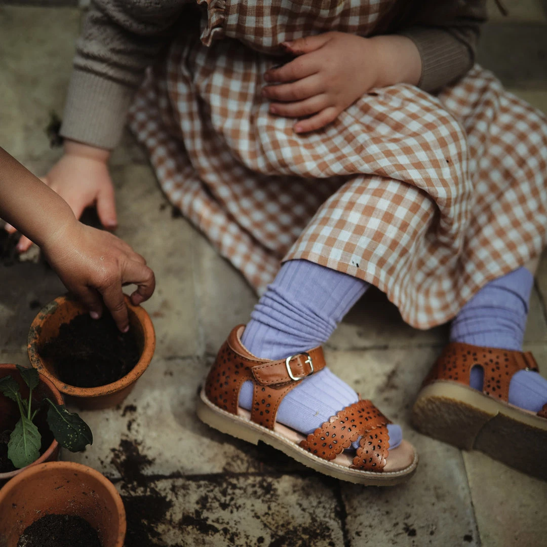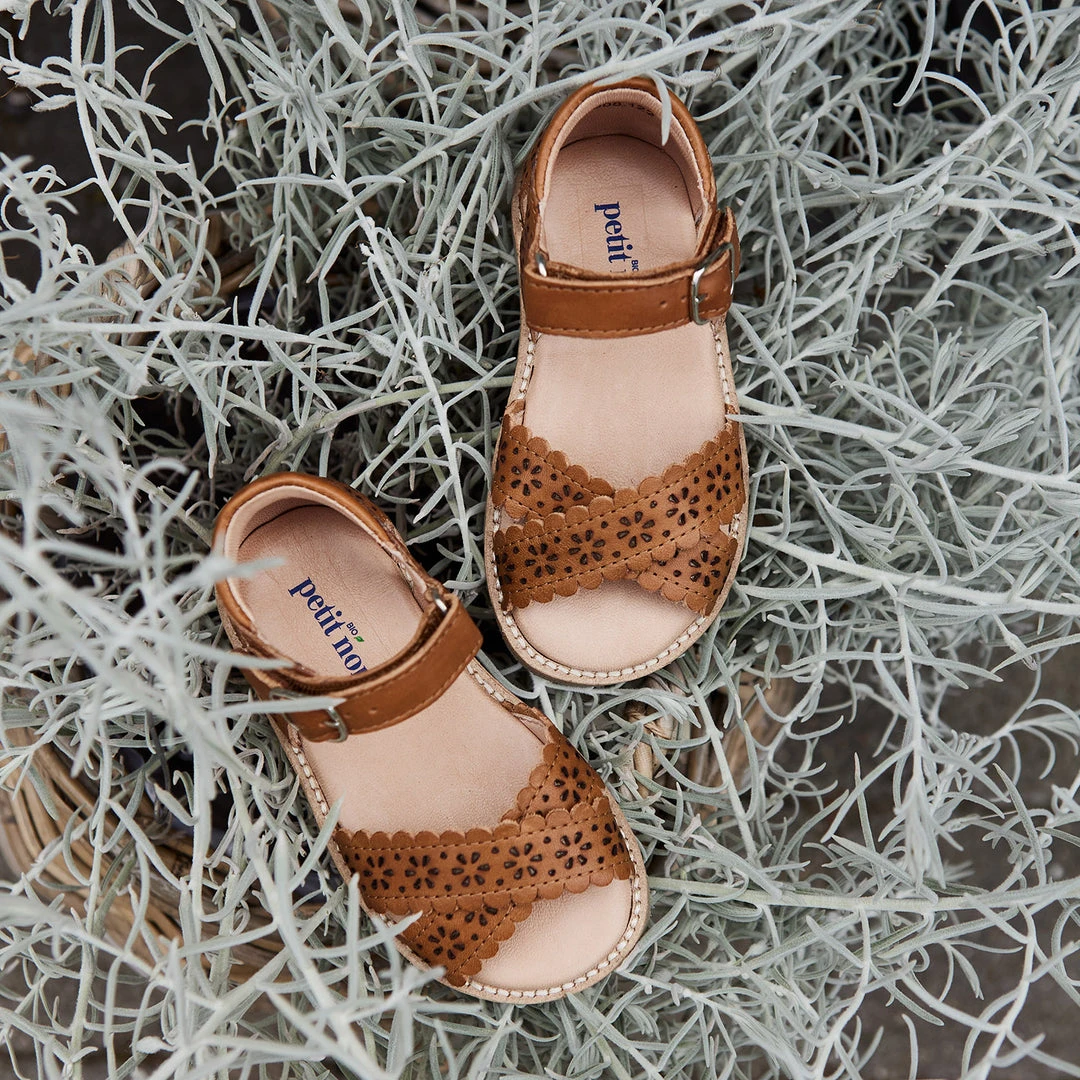 These sandals are a perfect addition to your summer wardrobe. The beautiful cut out pattern has a sweet vintage feel that will work well with many different outfits. A classic cross strap sandal with scallop edging detail. The details of this styles are understated making this sandal easy to wear. Perfect for the everyday, as well as dressed up for occasion wear. Featuring a practical velcro closure with buckle detailing. The insole is cushioned to ensure low impact. Suitable for kids of all ages.