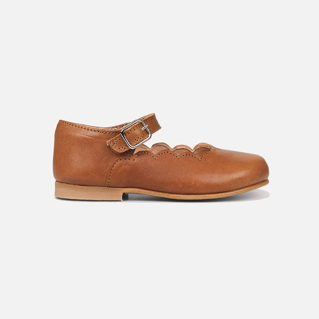 The scallop Mary-Jane’s are suitable for bigger kids. A thinner rubber sole has been chosen to provide greater flexibility and agility. Features velcro closure with buckle detailing making them an easy to slip on and off style. The cushioned insole and heel ensure low impact making them suitable for younger girls as well.