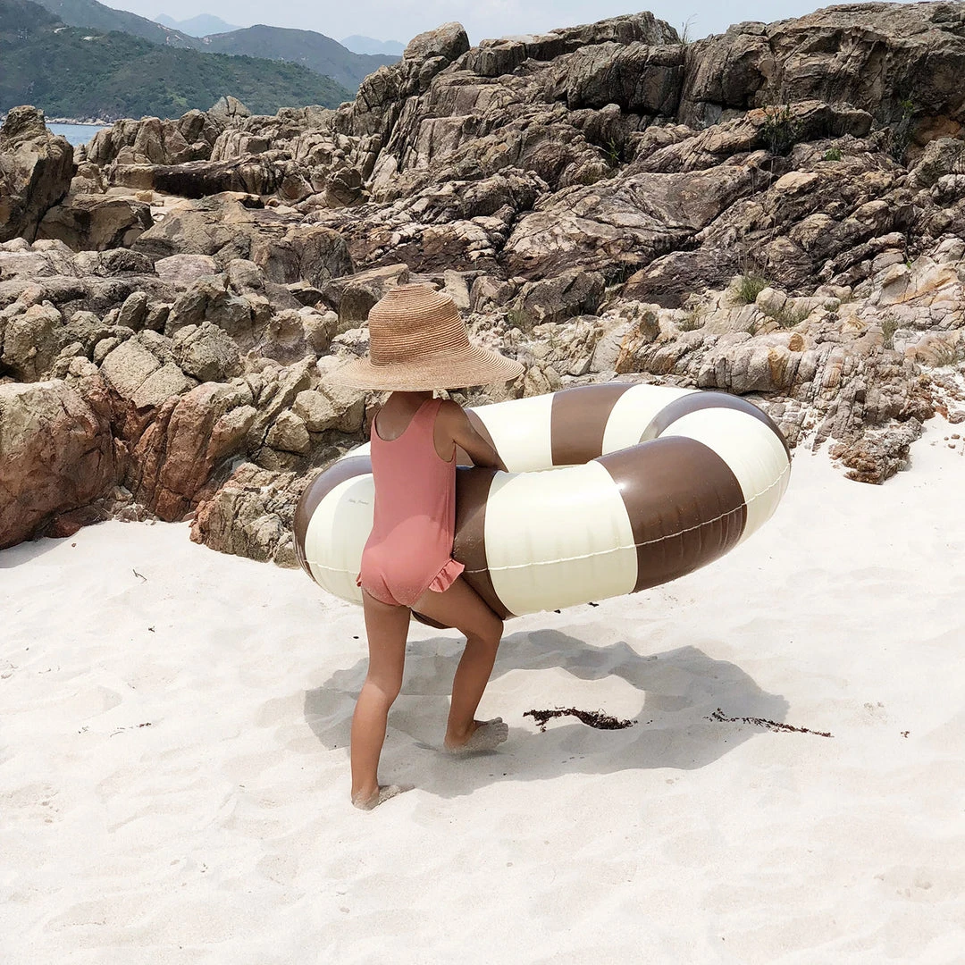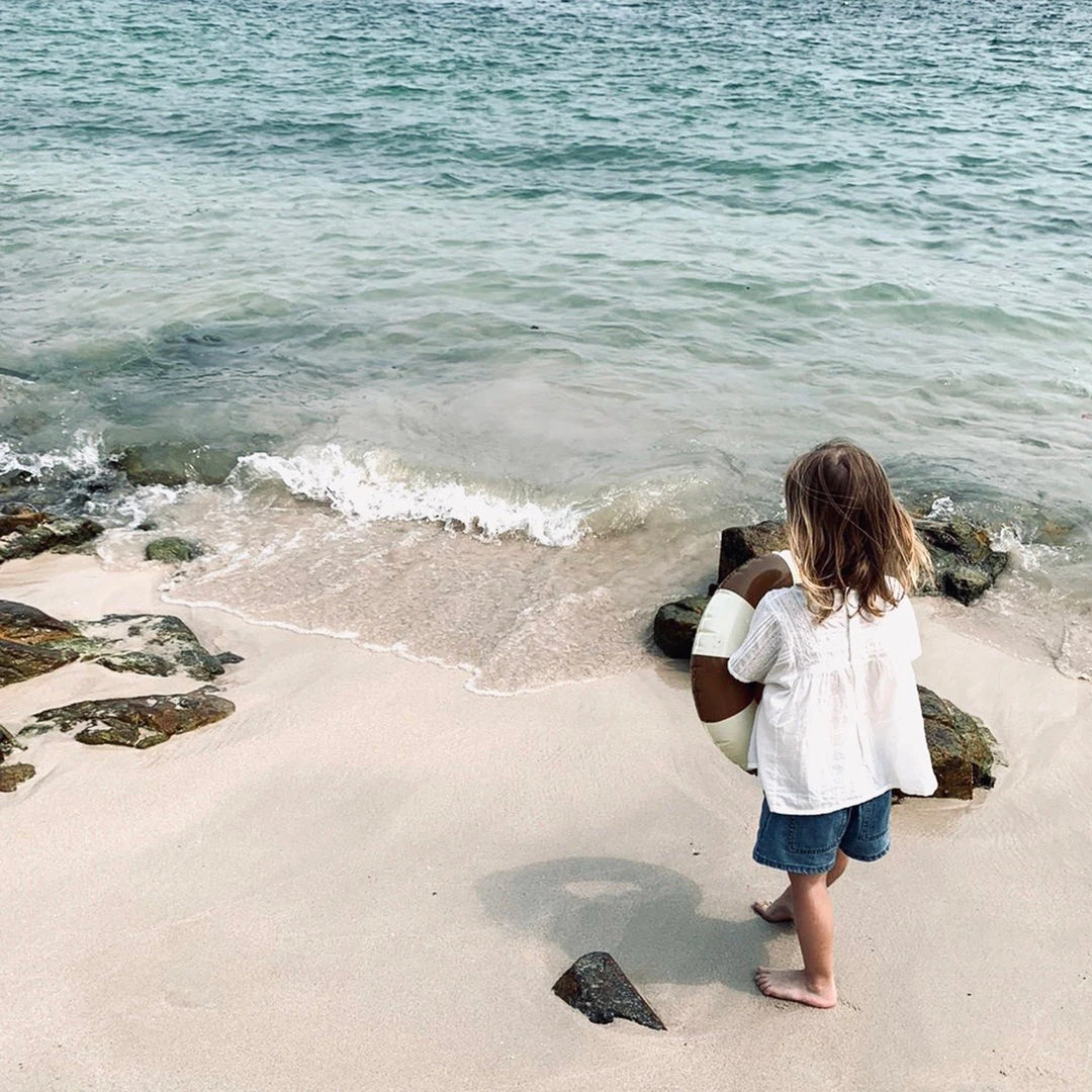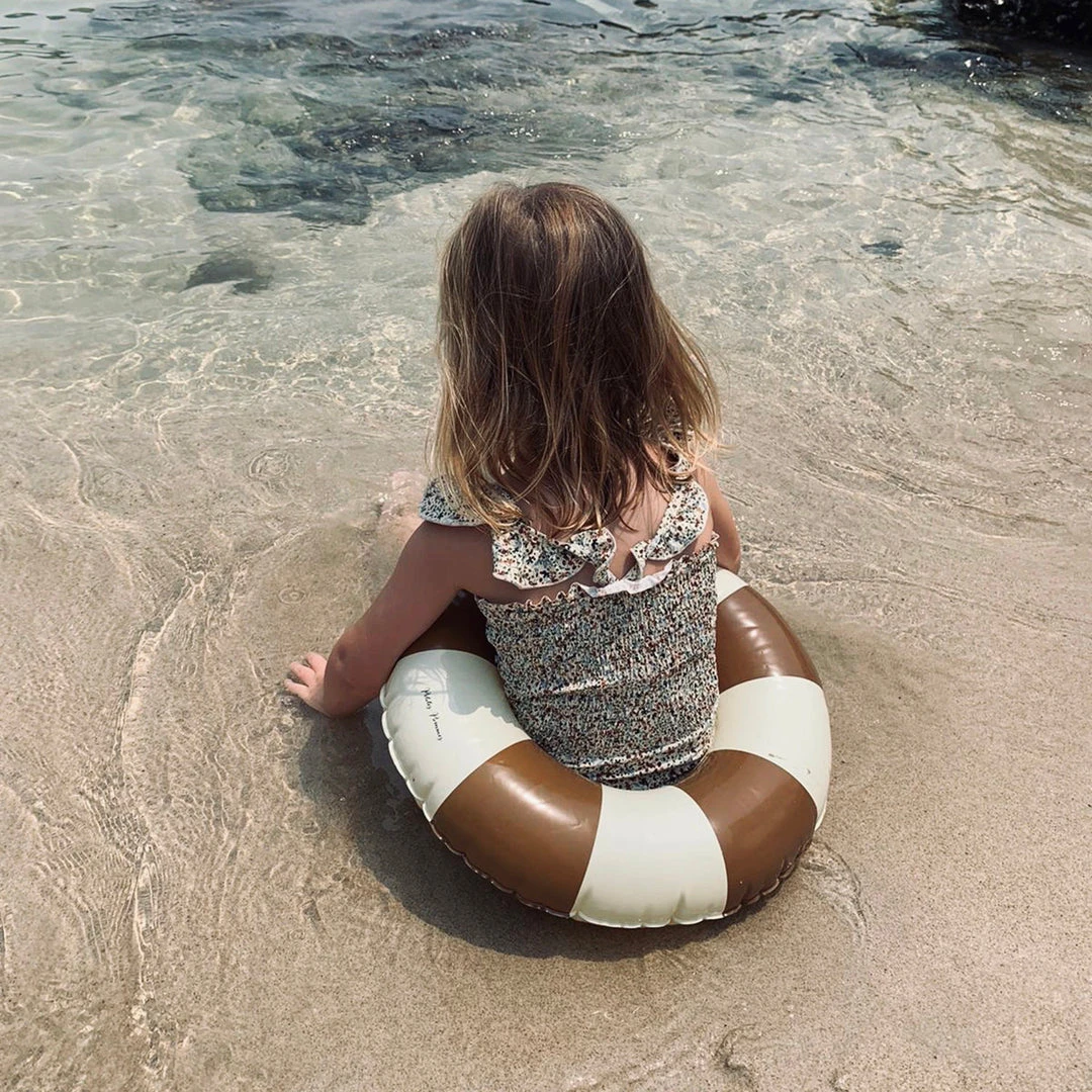 The Petites Pommes’ swim rings are a reborn childhood classic. The characteristic striped floats come in different sizes from toddler to adult, and in a range of beautiful colours to complete any summer look.
