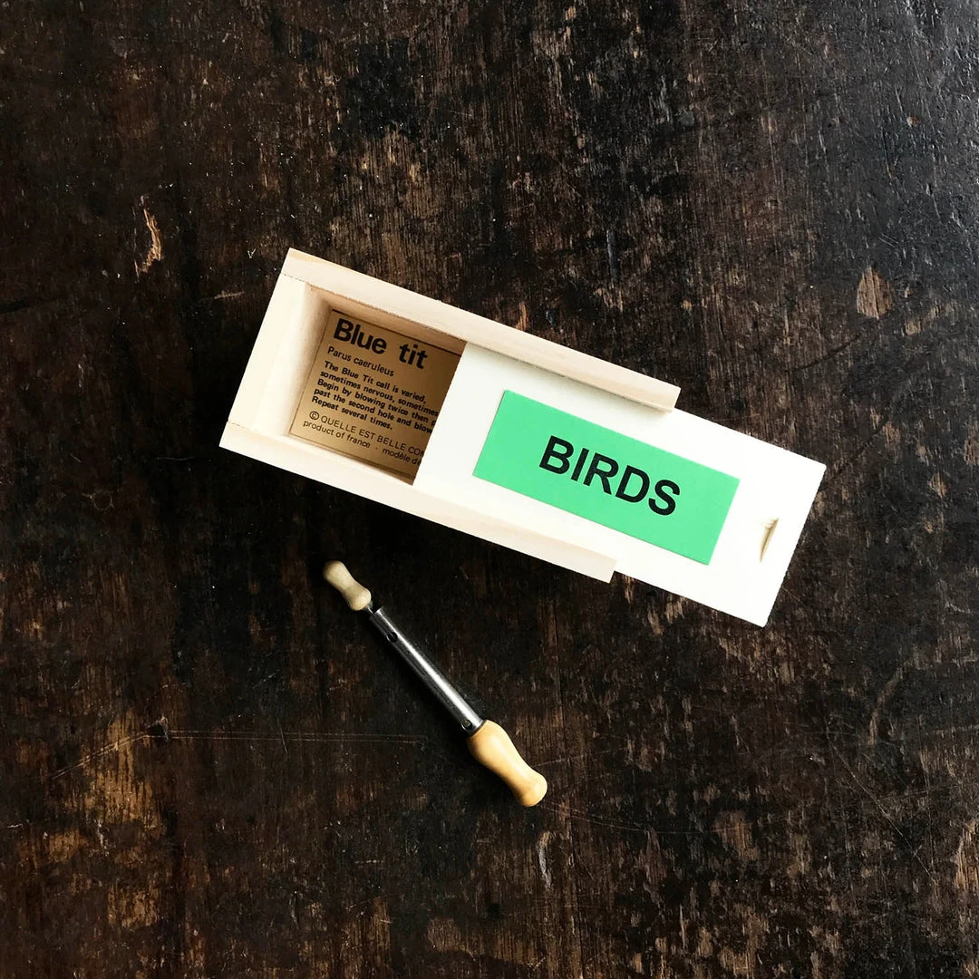 This bird call is made of beech and metal. Manipulate to create the trills of the Blue Tit.
