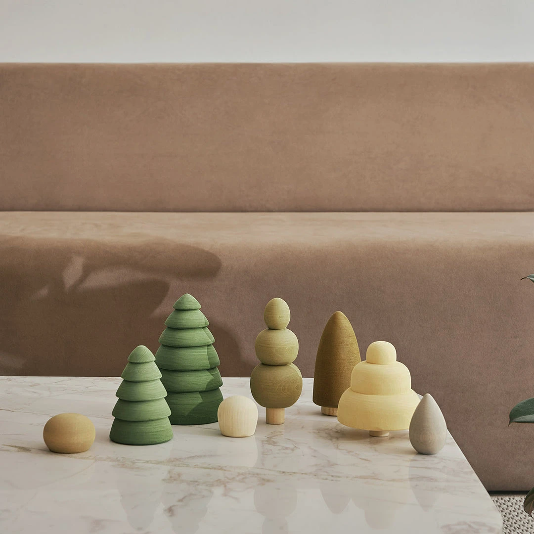 If your child is building a city from our Wooden Cubes, you can create a park in the middle of the city, or a forest in the areas around the city. If your child is building a mountain landscape with our Wooden Arches, you can create the forest around it in different seasons.