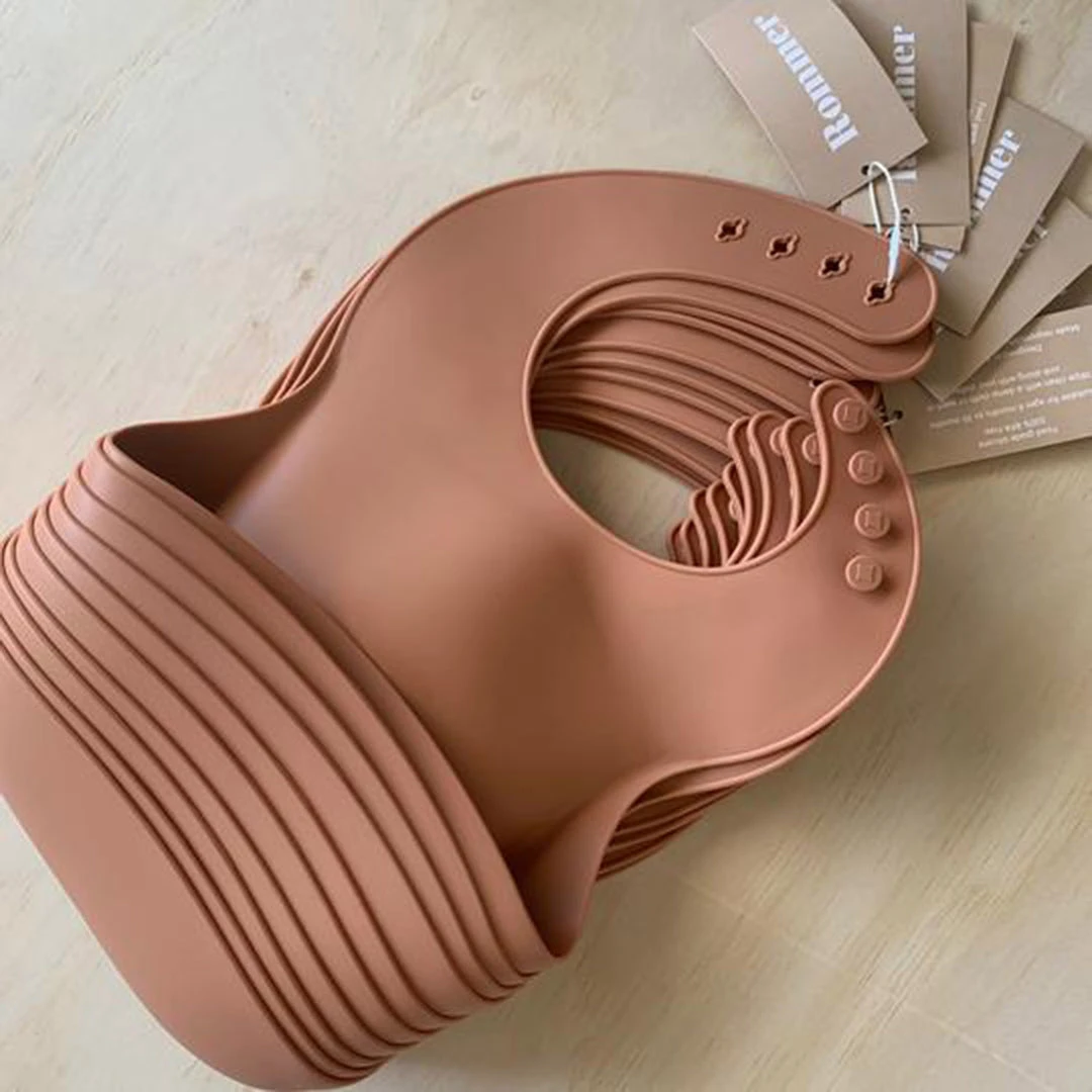 These bibs have a wide scoop bucket to catch all the crumbs and keep outfits clean.
